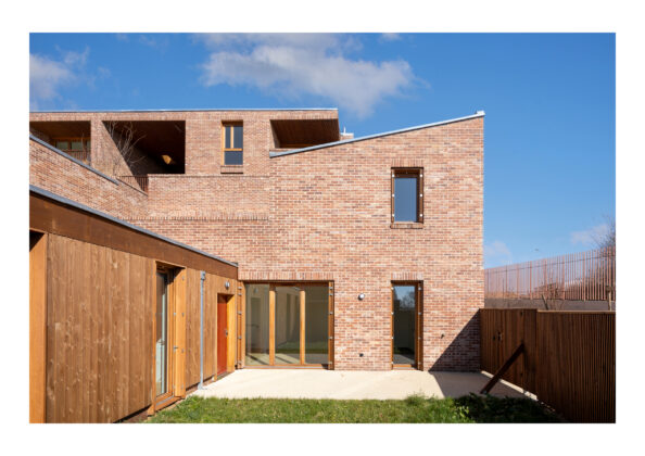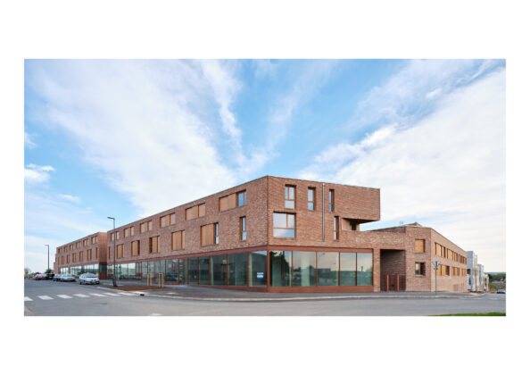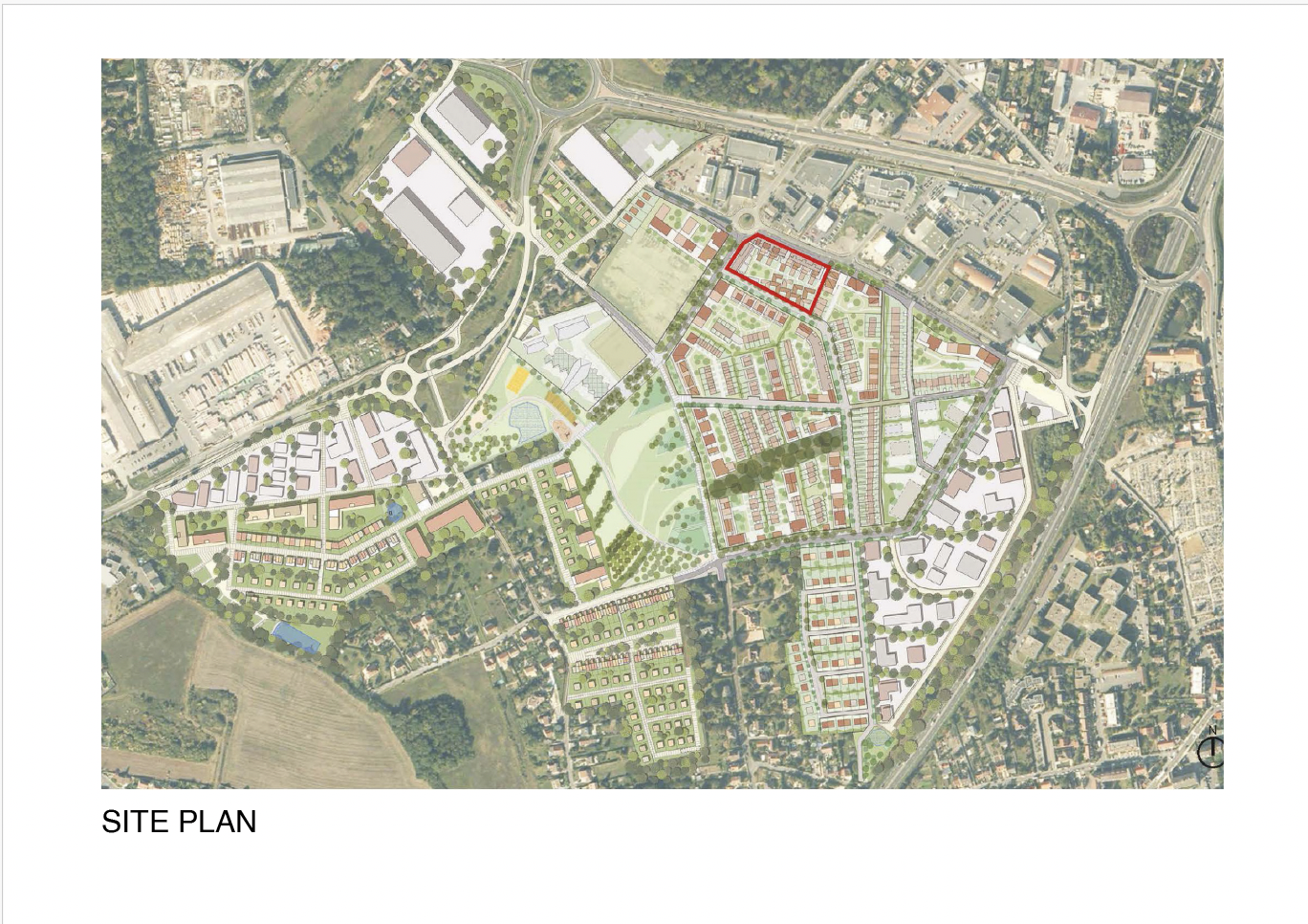 Il progetto per 56 Social Housing ad Arpajon si configura come un dispositivo urbano complesso, fondato sulla combinazione e sull’ibridazione di diverse tipologie residenziali all’interno di un lotto di circa 7.000 m², collocato nel perimetro di un’area di espansione urbana ai margini nord-occidentali della città. L’intervento, firmato da Jean & Aline Harari con Franck Lemoine, candidato agli EUMies Awards, risponde a un programma articolato che integra abitazioni sociali, spazi commerciali, funzioni collettive e parcheggi, proponendo una visione unitaria capace di superare la tradizionale separazione tra residenza e città.