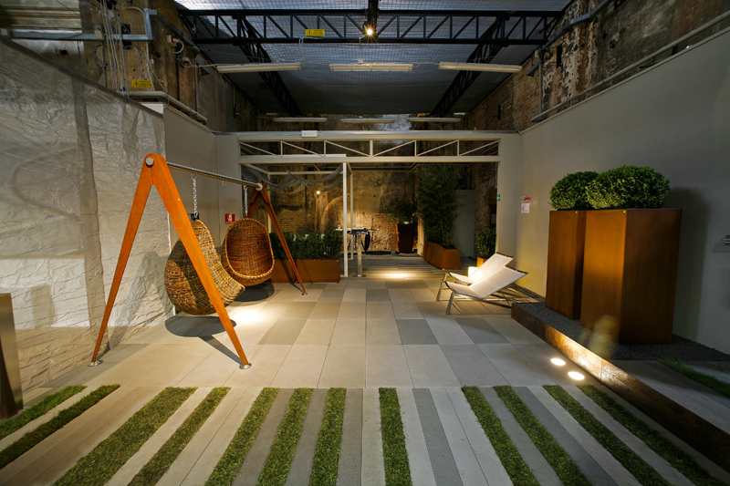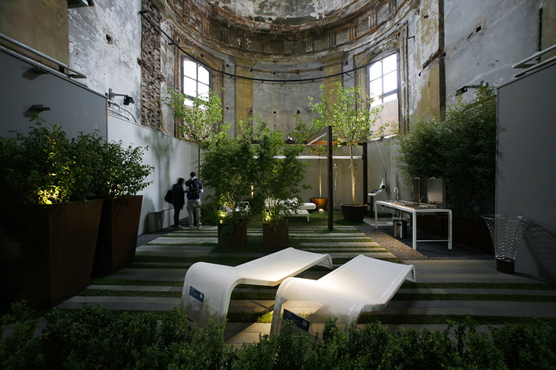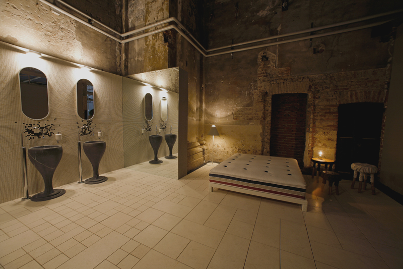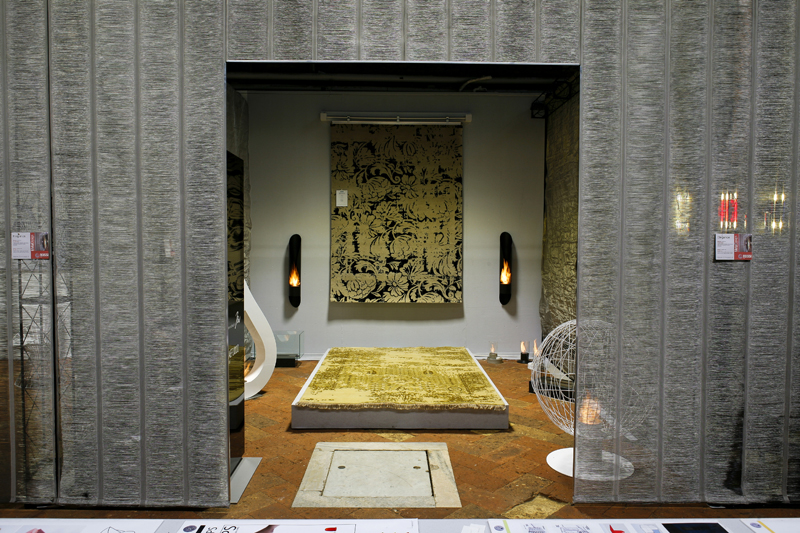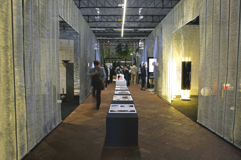 Il colore (protagonista di un'esperienza di purificazione) e i materiali dell'allestimento (uno speciale tessuto metallico che si srotola lungo tutta la navata) hanno consentito di ricostruire gli spazi dell'architettura religiosa: la navata centrale, le cappelle laterali, i due transetti laterali e l'Abside. Ambienti interpretati dalle aziende attraverso i loro prodotti, le superfici, le trame. Un'esperienza nuova, una modalità di esposizione che consente di mostrare il prodotto ma anche  di esprimere la capacità di ricerca, di analisi, di innovazione.