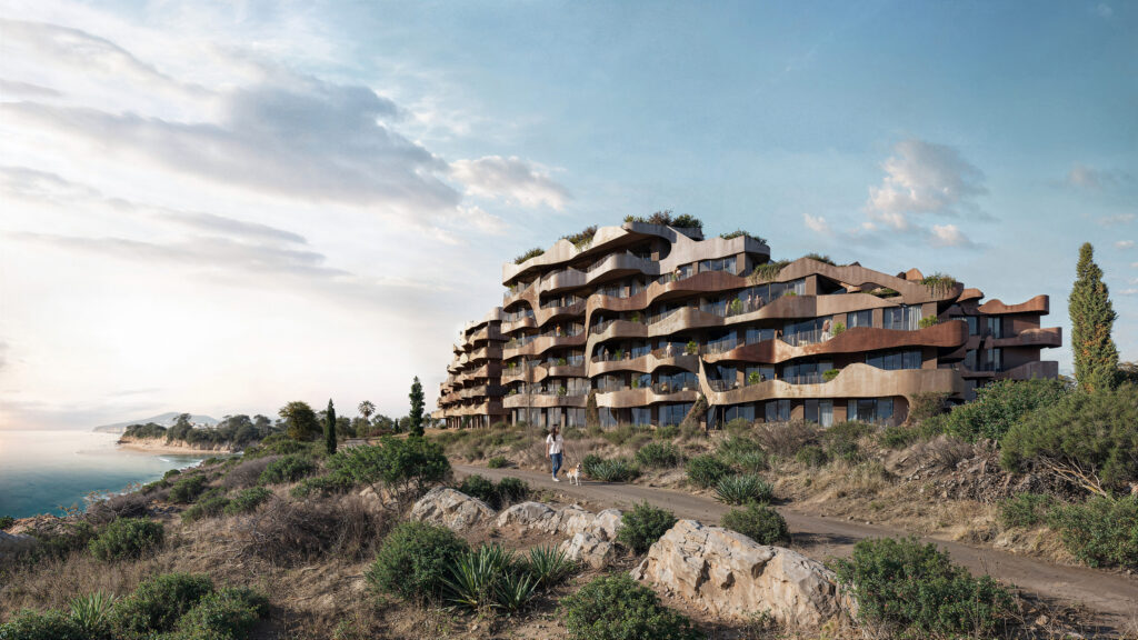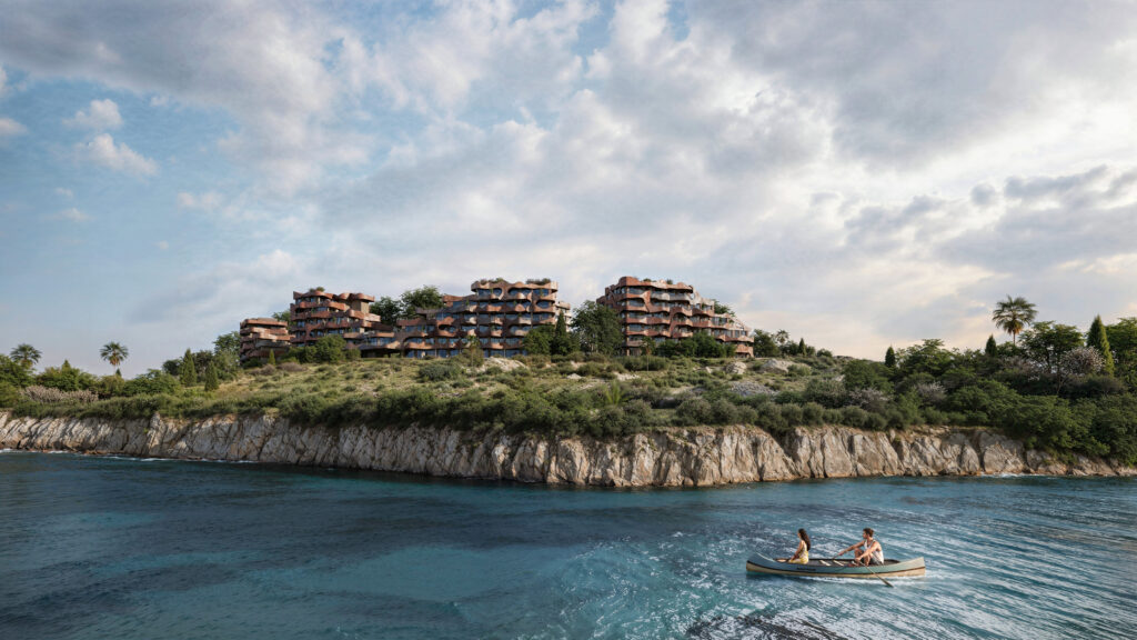 Ulteriore integrazione con il paesaggio è ottenuta attraverso le coperture a diverse altezze, che si alzano e si abbassano seguendo la topografia del sito. Questo approccio genera un paesaggio architettonico che si fonde armoniosamente con l’ambiente naturale, creando una configurazione quasi anfiteatrale attorno alla piazza principale. Il programma funzionale comprende circa 250 appartamenti e un hotel distribuiti su 26.000 m². Al centro dello sviluppo, la piazza principale si sviluppa su cinque livelli terrazzati e accoglie un padiglione comunitario. Un parco mediterraneo, caratterizzato da una vegetazione stratificata e rigogliosa, si estende su tutto il lotto, rafforzando il rapporto del progetto con il paesaggio circostante.