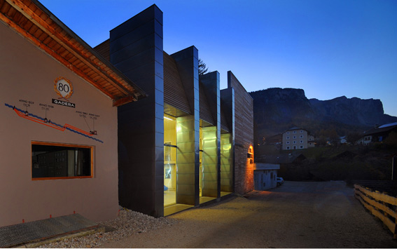 Questa piccola realizzazione a in località San Cassiano (BZ) in Alta Badia ricerca un giusto equilibrio tra architettura, esigenze funzionali e forte significato simbolico. Il contenitore si interessa al suo contenuto, mettendolo orgogliosamente in mostra e non nascondendolo. La funzione nobilissima di produrre energia dal piccolo torrente Gadera viene così raccontata con un approccio contemporaneo che ne riscopre il valore, riuscendo, comunque, ad inserirsi con discrezione tra i boschi, le montagne e l’architettura tradizionale.