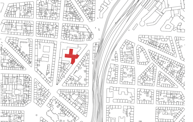 Il nuovo volume si allinea alle altezze di gronda e di colmo degli edifici adiacenti, garantendo la continuità del blocco urbano senza superare le quote della scuola situata sul fronte opposto. Per ridurre la percezione della lunghezza della facciata su strada, l’edificio arretra leggermente nella parte centrale, definendo un’area di accesso semi-pubblica e uno spazio filtro tra strada ed ingresso.