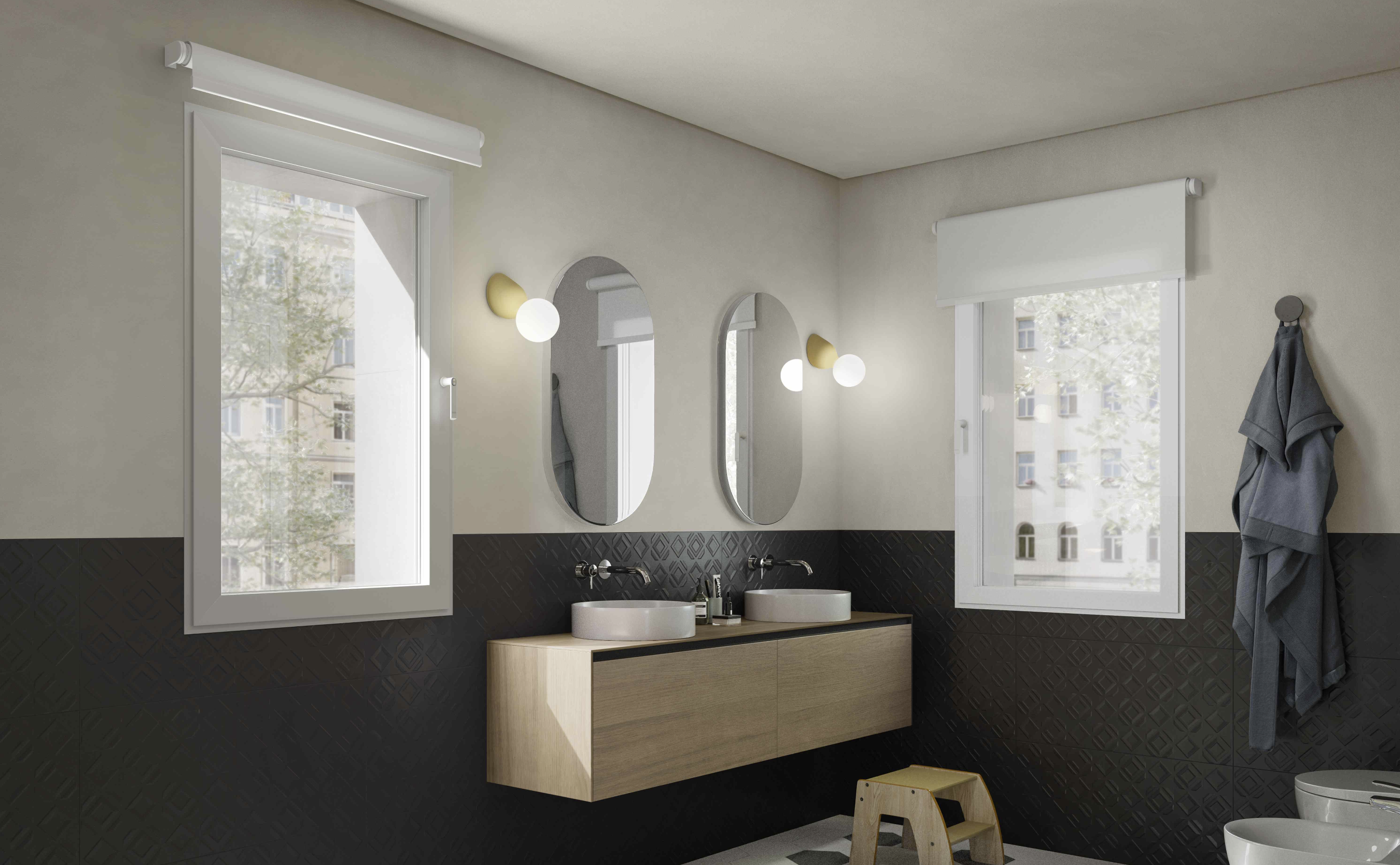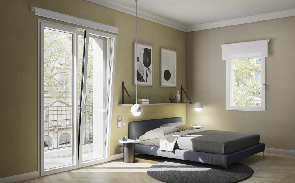 Il cuore tecnologico dei sistemi risiede nei profili di anta sottili, privi di fermavetro interno, che scompaiono nel telaio lasciando visibili solo 73 mm di alluminio. Questo favorisce l’ingresso di luce naturale negli ambienti e compensa la riduzione del vano finestra che può derivare da un intervento di cappotto esterno. Grazie all’anta a scomparsa e ai profili snelli dei sistemi in alluminio Schüco Block System, infatti, la superficie vetrata aumenta fino a ottenere circa il 20% di luce naturale in più rispetto a una finestra con anta in vista, migliorando così il benessere indoor.