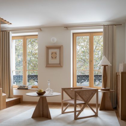 Nell’EM Hotel Paris ogni scala – dall’architettura al dettaglio – è parte di un sistema coerente. Le maniglie, le lampade, le sedute, le boiserie sono pezzi unici, prodotti con le stesse mani che ne hanno concepito la forma. Nulla è standard, nulla è lasciato al caso: l’albergo si offre come un microcosmo di materia e memoria, dove il design si confonde con l’artigianato e la fabbrica con l’officina poetica.