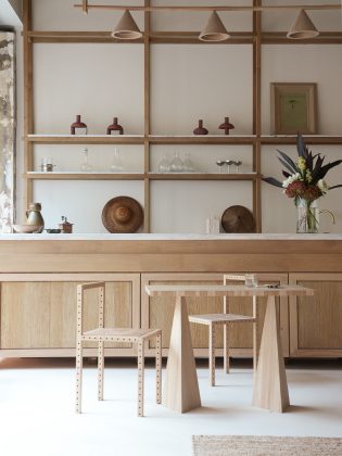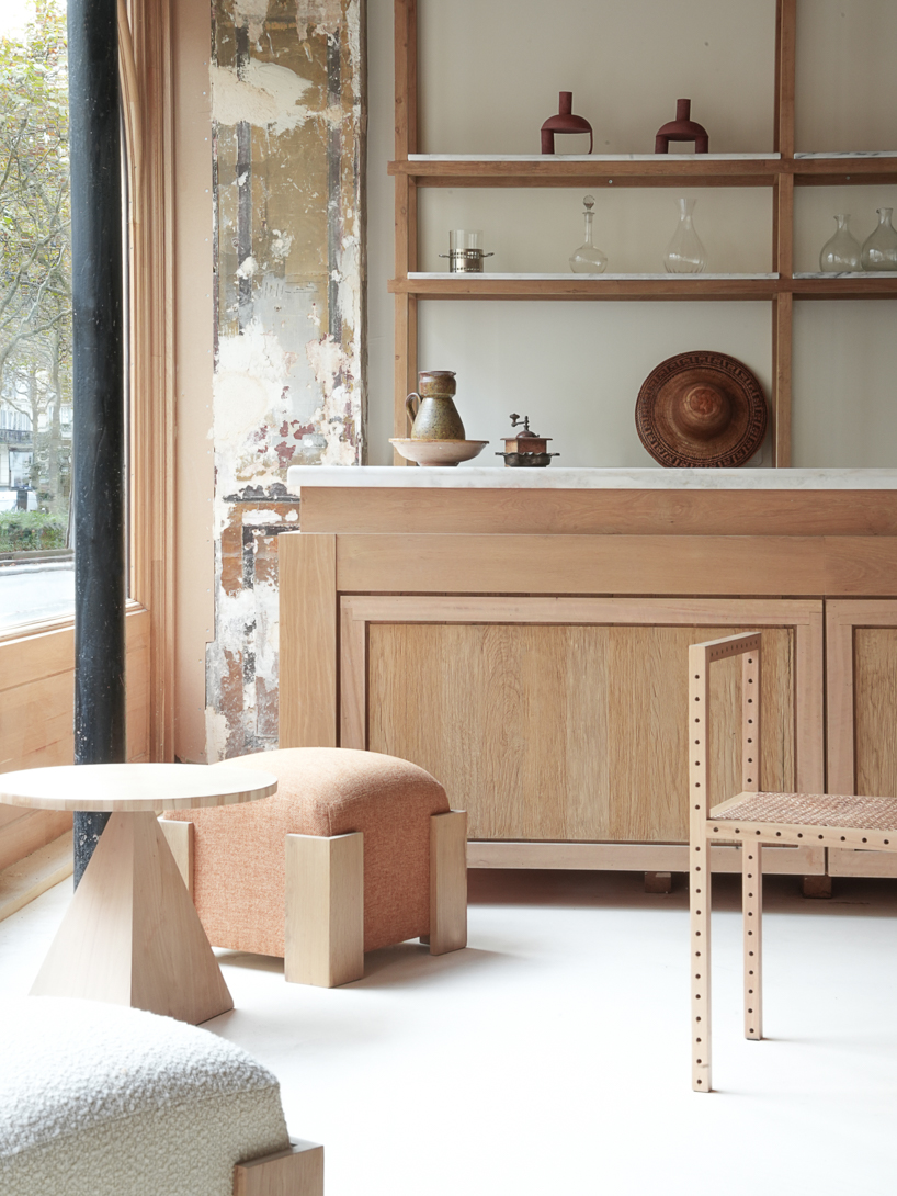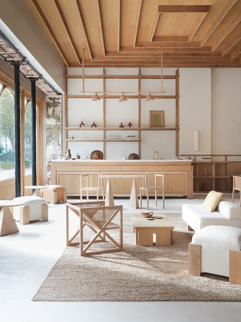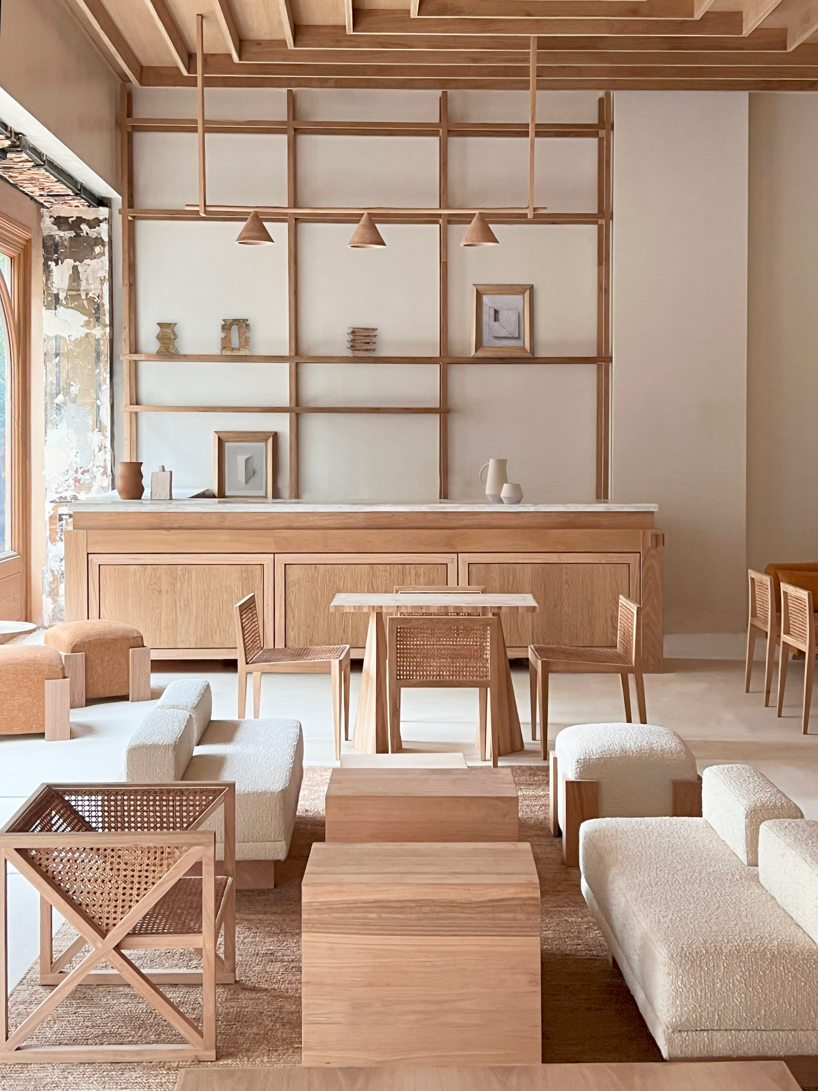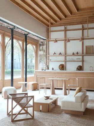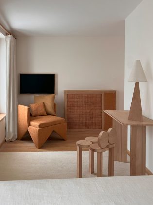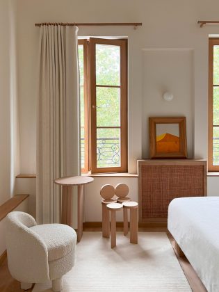 L’edificio, abbandonato per anni, è stato interamente ripensato in chiave contemporanea da Julien Labrousse e dal suo team, che hanno scelto di affrontare il progetto come un esperimento integrale: ogni elemento, dal disegno degli arredi alla selezione dei materiali, è stato ideato e realizzato internamente, nel laboratorio di Fábrica Policronica in Portogallo.