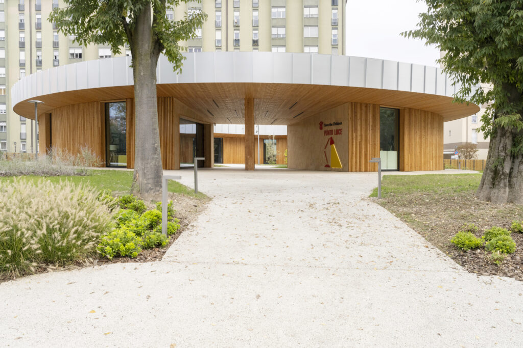 Inoltre, la commissione ha assegnato una menzione speciale filiera PEFC al progetto Punto Luce Gallaratese - (MI) - Studio AOUMM per la rilevanza sociale in un contesto metropolitano non privo di criticità. Partendo da vincoli considerevoli, come la scelta di riusare una gabbia di fondazioni preesistenti a maglia quadrangolare, poi rimodulata in un impianto centrale a sviluppo anulare irregolare, il progetto e il disegno paesaggistico degli spazi aperti introducono un’oasi di respiro nel rapporto tra spazi interni ed esterni.