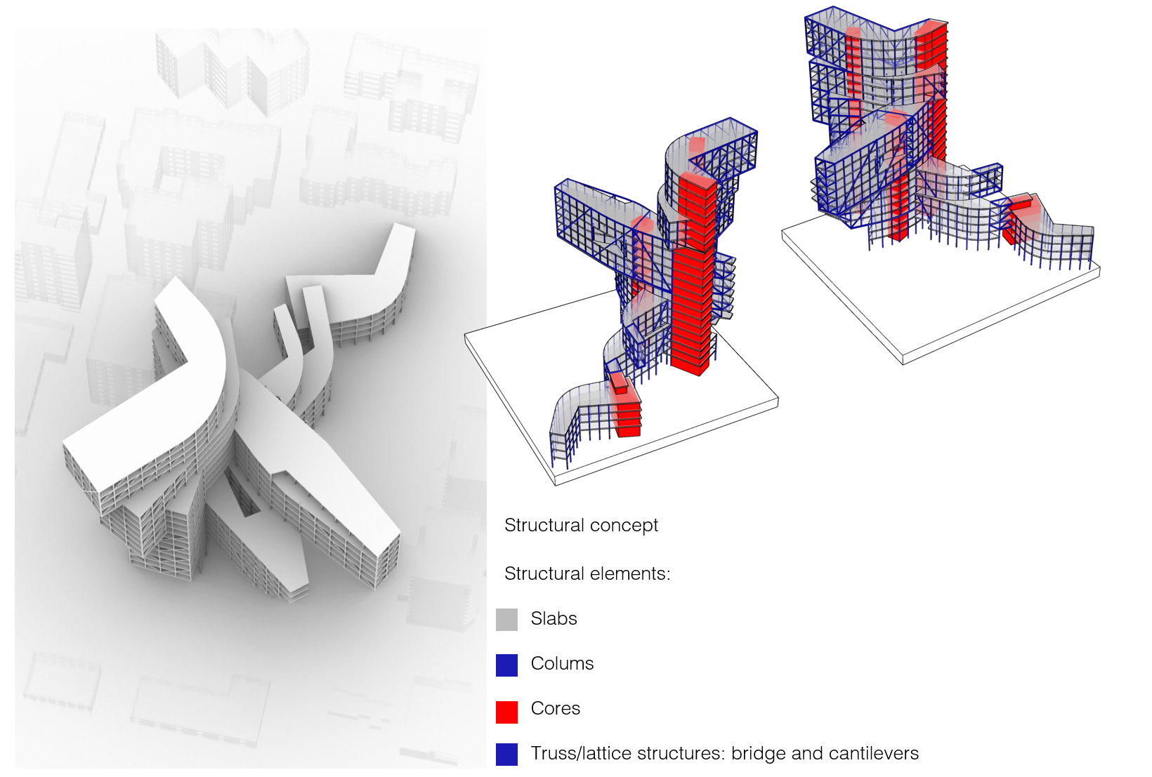 Concorso a Tirana con EMBT, edificio a uso misto (residenziale/commerciale/uffici): soluzione scelta a seguito del confronto svolto con il contributo dell’AI in alcune ore