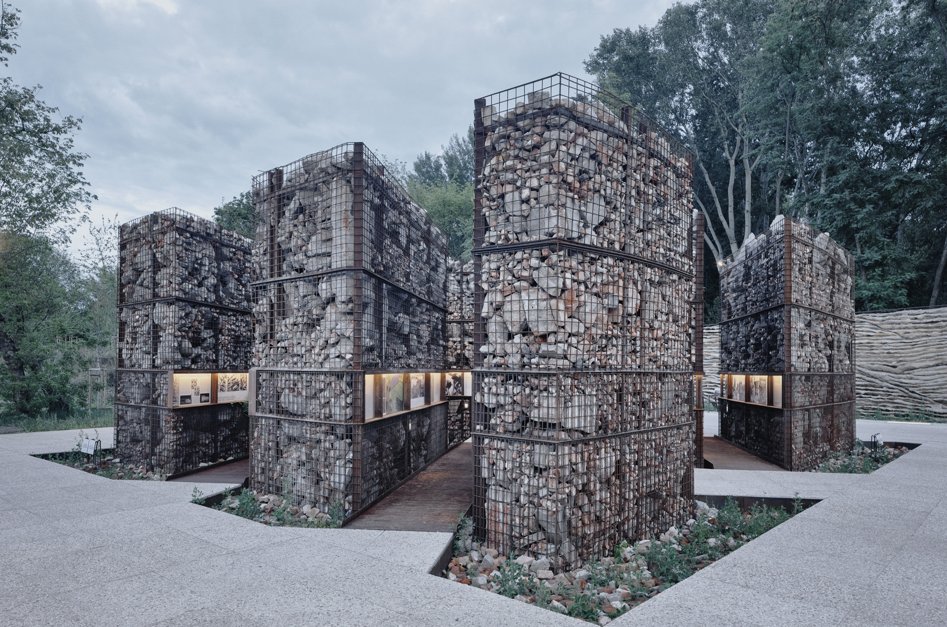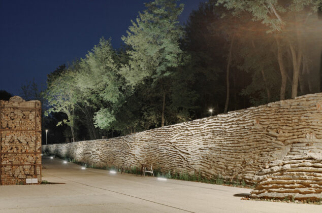 Allo stesso tempo, il progetto rilegge la materia originaria del sito – le macerie – come risorsa costruttiva e narrativa. Attraverso lo sviluppo di tecnologie contemporanee di calcestruzzo con aggregati riciclati, i detriti vengono riutilizzati in loco per realizzare muri di contenimento, percorsi e dispositivi spaziali che rendono visibile la stratificazione storica del terreno. Frammenti di edifici preesistenti emergono così all’interno delle nuove strutture, trasformando l’infrastruttura del parco in un archivio materiale della città scomparsa.