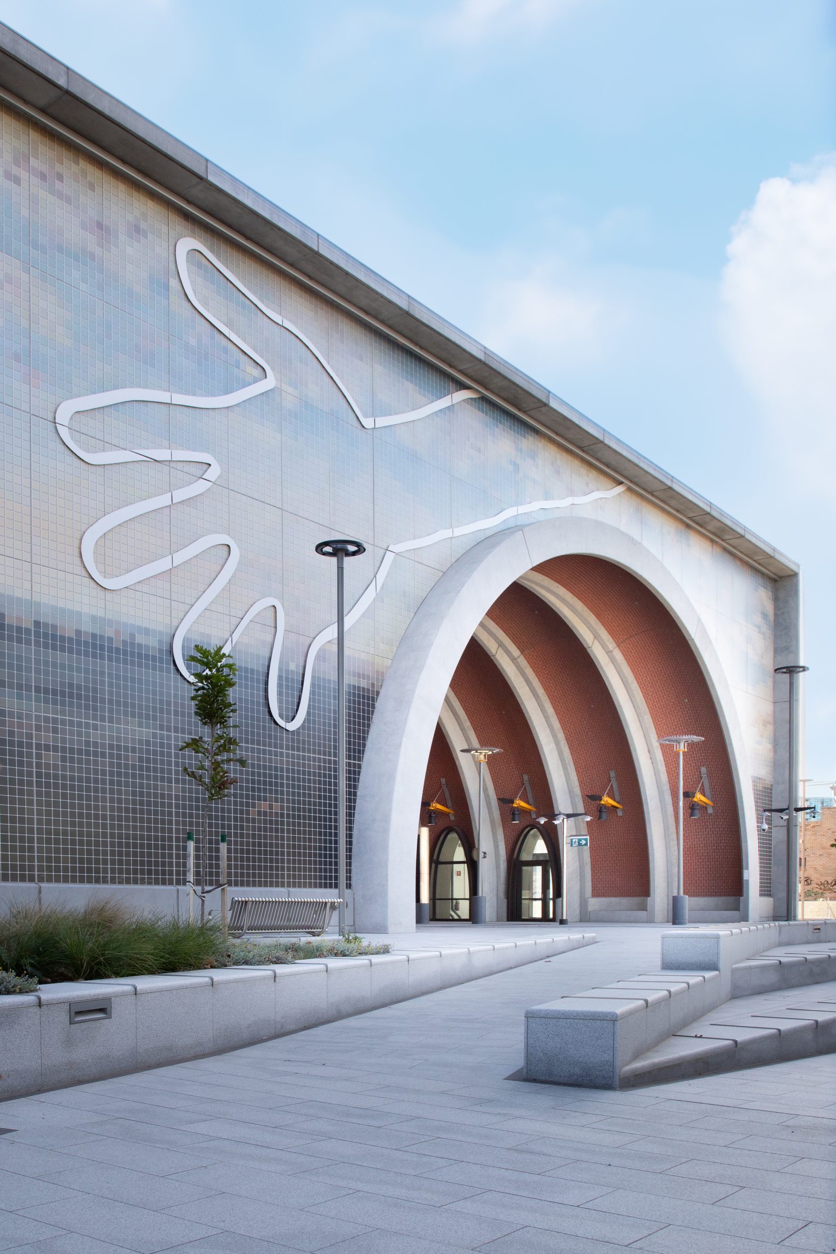 Arden Station, parte fondamentale del progetto Metro Tunnel del Governo dello Stato di Victoria, è diventata un nuovo punto di riferimento civico. Tra i suoi elementi distintivi vi è un’opera d’arte pubblica integrata, firmata dal rinomato artista australiano Abdul Abdullah. La sua opera Come Together, inizialmente concepita come un mosaico, è stata infine realizzata su larga scala grazie al gres personalizzato con tecnologia DYS - Design Your Slabs di Fiandre. Questa tecnologia a stampa a caldo ha permesso una riproduzione ad alta risoluzione e senza soluzione di continuità dell’opera, mantenendo al contempo le prestazioni necessarie per un’infrastruttura di trasporto complessa.