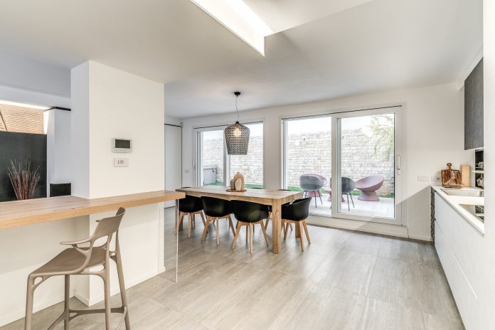 Il desiderio dei proprietari era preciso: dare vita a un rifugio intimo, luminoso e protetto dal rumore. La vicinanza a un sottovia ferroviario ha reso necessario un isolamento acustico avanzato, ottenuto grazie a serramenti ad alte prestazioni capaci di garantire protezione senza sacrificare l’estetica. La scelta è ricaduta su Prolux Evolution di Oknoplast, selezionata per il suo design moderno e per le performance superiori.