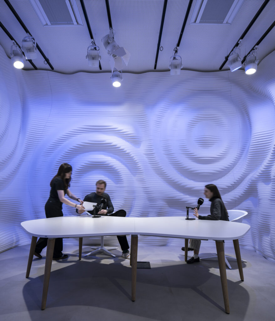 Un altro elemento distintivo è l’integrazione degli spazi dedicati alla comunicazione. Auditorium, studio di registrazione e area showcooking sono tecnologicamente interconnessi e pensati come un unico ecosistema, capace di supportare eventi, talk, produzioni digitali e contenuti destinati sia alla comunicazione interna sia a quella esterna. Questa scelta riflette la volontà di Lactalis di dotarsi di strumenti flessibili e contemporanei per raccontare il proprio mondo.