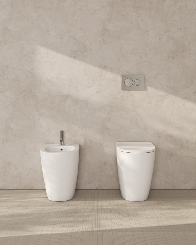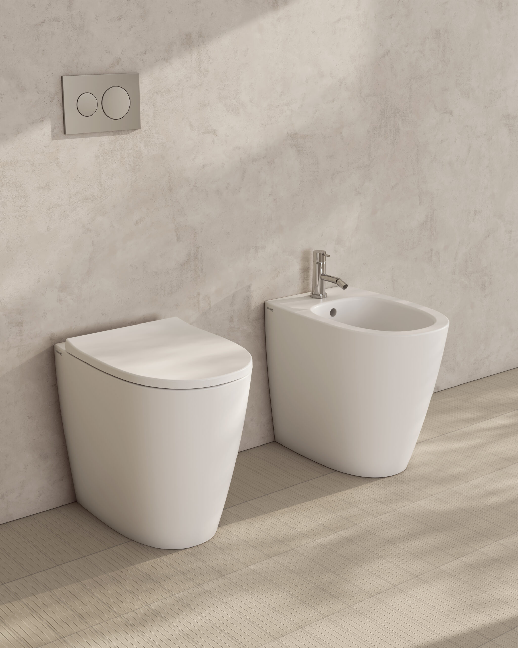 - 4All e il design "Height": La vera novità della linea 4All è la versione a terra con altezza maggiorata a 48 cm. Non si tratta di una semplice variazione dimensionale, ma di un impegno verso l'inclusività. Questa altezza facilita l’uso da parte di persone anziane o con difficoltà motorie, rendendo il bagno un ambiente ergonomico e sicuro per tutti, senza sacrificare l'eleganza formale.