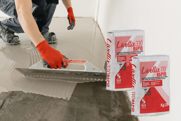 Sicilgesso presenta Livellix, la nuova linea di sottofondi autolivellanti cementizia presa rapida e alte prestazioni per la preparazione dei piani di posa al fine di livellare e lisciare fondi con dislivelli da 1 sino a 30 mm. Alte resistenze meccaniche, elevata fluidità, ottima adesione al sottofondo, garantiscono l’esecuzione di sottofondi perfettamente planari.