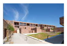 Il secondo volume è vegetazionale, ed è composto, questa volta con forza, dalla massa degli alberi che piantumano le dune, come un corollo che cinge la composizione e ha l’importante funzione di compensare le risorse naturali sottratte comunque dallo sviluppo del sito, attivando scambi biotopici con l’ambiente intorno. Le scatole si impongono come due volumi definiti, semplici e appartenenti al contesto. Ma in realtà la loro massa è solo apparentemente pesante: la lettura dei sistemi costruttivi ci parla di leggerezza.
