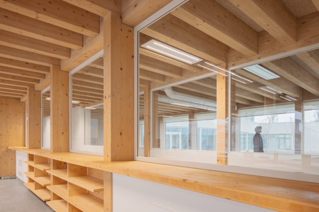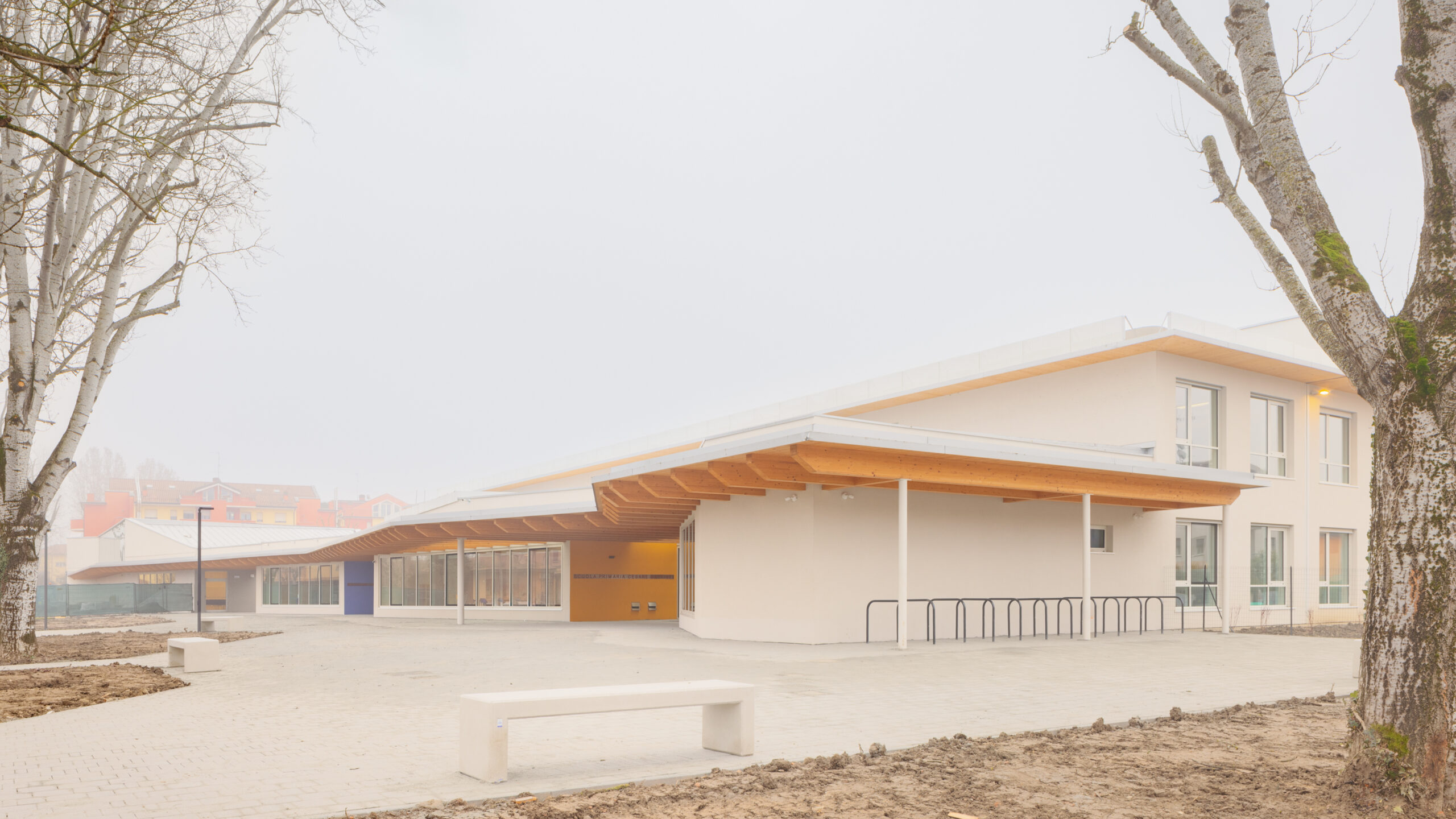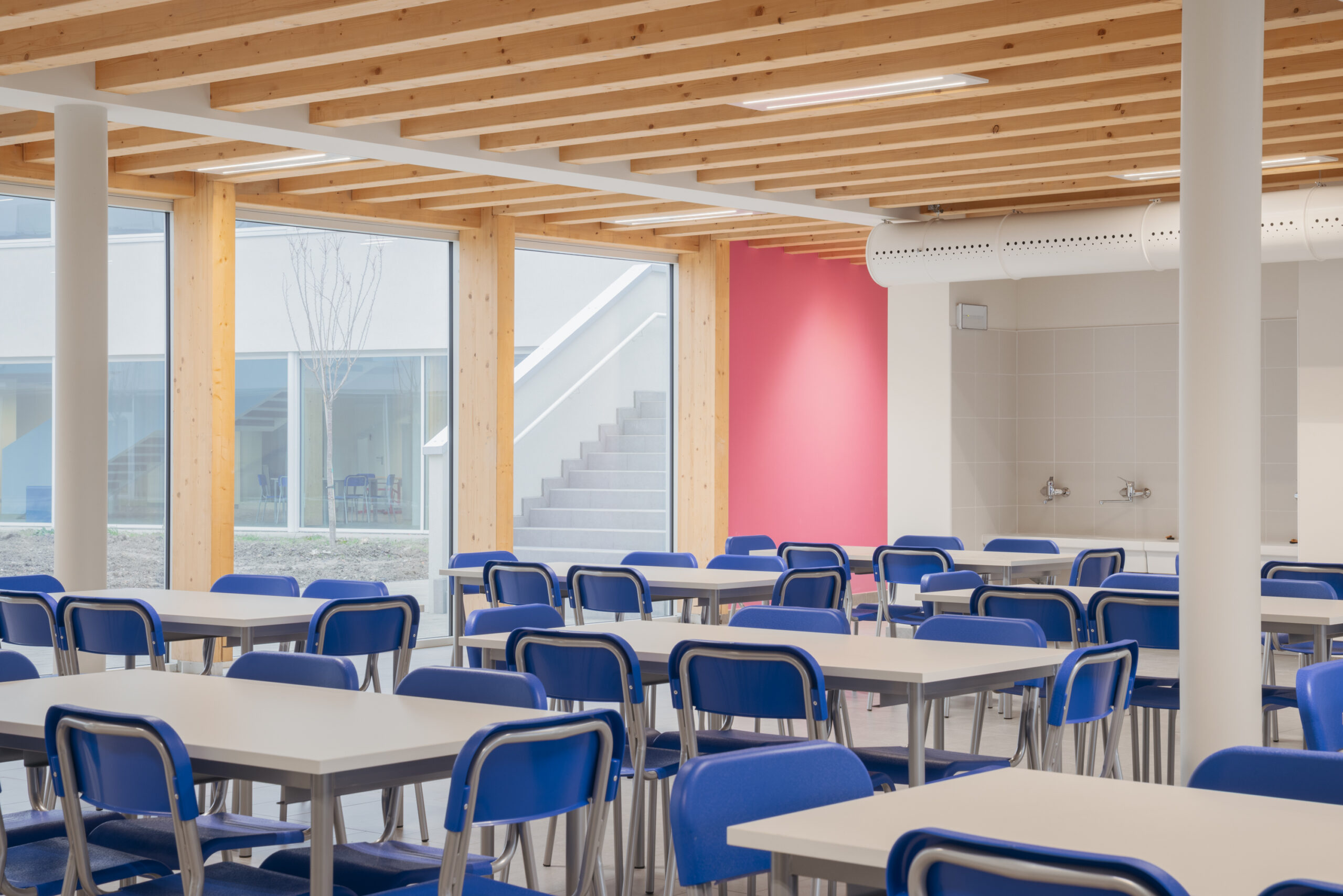 Grande attenzione è stata riservata anche alla qualità degli ambienti e al benessere quotidiano, con spazi interni ed esterni progettati per favorire comfort, inclusione e rapporto con l’ambiente. Una struttura mista in cemento armato e legno, antisismica e ad alta efficienza, garantisce il rispetto degli obiettivi posti dalla direttiva comunitaria 31/201, che prevede entro il 2019 l’applicazione del protocollo “Near Zero Energy Buildings” agli edifici pubblici con un impianto fotovoltaico che garantisce un bilancio quasi zero tra l’energia consumata e quella prodotta. La ventilazione meccanica controllata, i sistemi domotici, le ampie superfici vetrate e gli spazi didattici all’aperto completano un intervento pensato per incentivare la sostenibilità e il rispetto dell’ambiente.