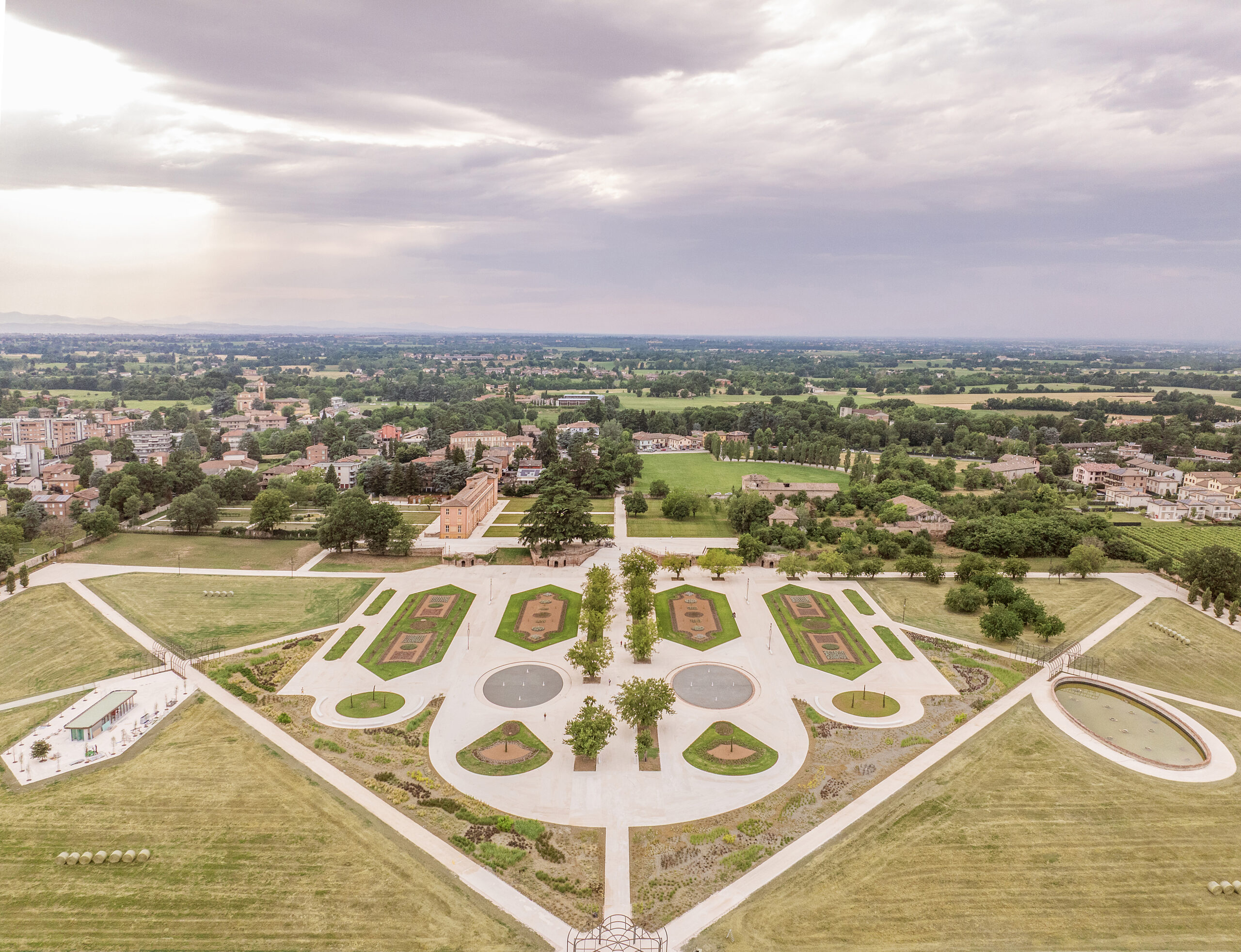 Il Parco della Reggia di Rivalta, inaugurato nel giugno 2025, segna la trasformazione di un sito storico in una nuova infrastruttura ecologica e culturale. Il progetto nasce da un luogo ricco di stratificazioni: storie che si sono sviluppate nel tempo tornano a vivere - da un giardino estense del XVIII secolo alla campagna produttiva, da uno spazio residuale a un parco pubblico. La molteplicità dei suoi diversi passati si svela in un parco in cui epoche mai coesistite riaffiorano e ora convivono fianco a fianco.