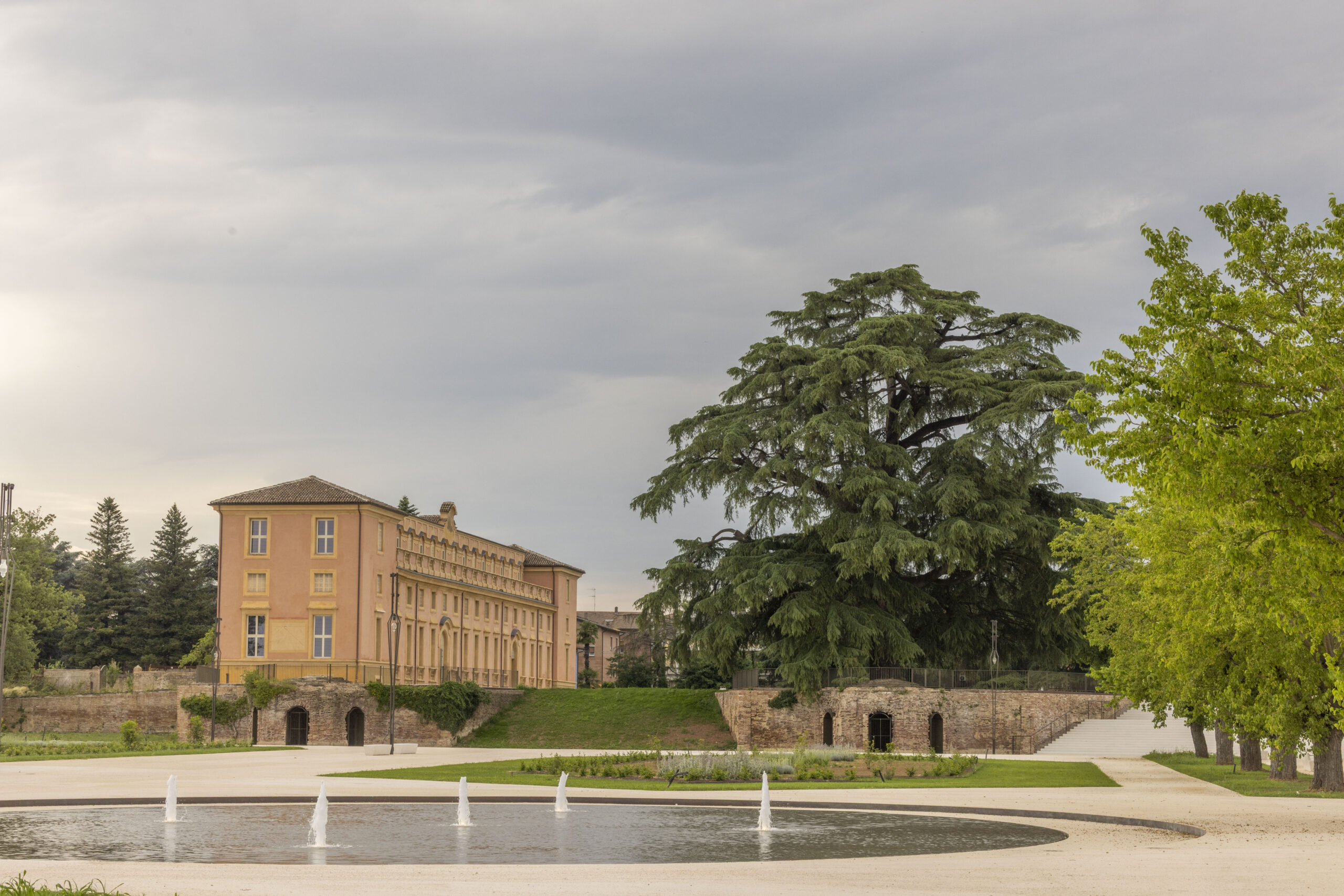 Un boulevard perimetrale, adiacente all'antica cinta muraria, definisce il margine e connette alcune delle principali attrazioni del parco: il parterre centrale, con le sue fontane ovali e il giardino d'inverno; la rotonda degli olmi; il prato da ballo, palcoscenico per antiche cerimonie o nuovi rituali spontanei; e il belvedere, che offre un punto di vista privilegiato sul paesaggio. Un sistema di percorsi diagonali rende accessibile la parte centrale del parco - un frammento di paesaggio rurale in cui lo sfalcio stagionale, le fioriture inattese e le mescolanze imprevedibili testimoniano una natura in continua trasformazione.