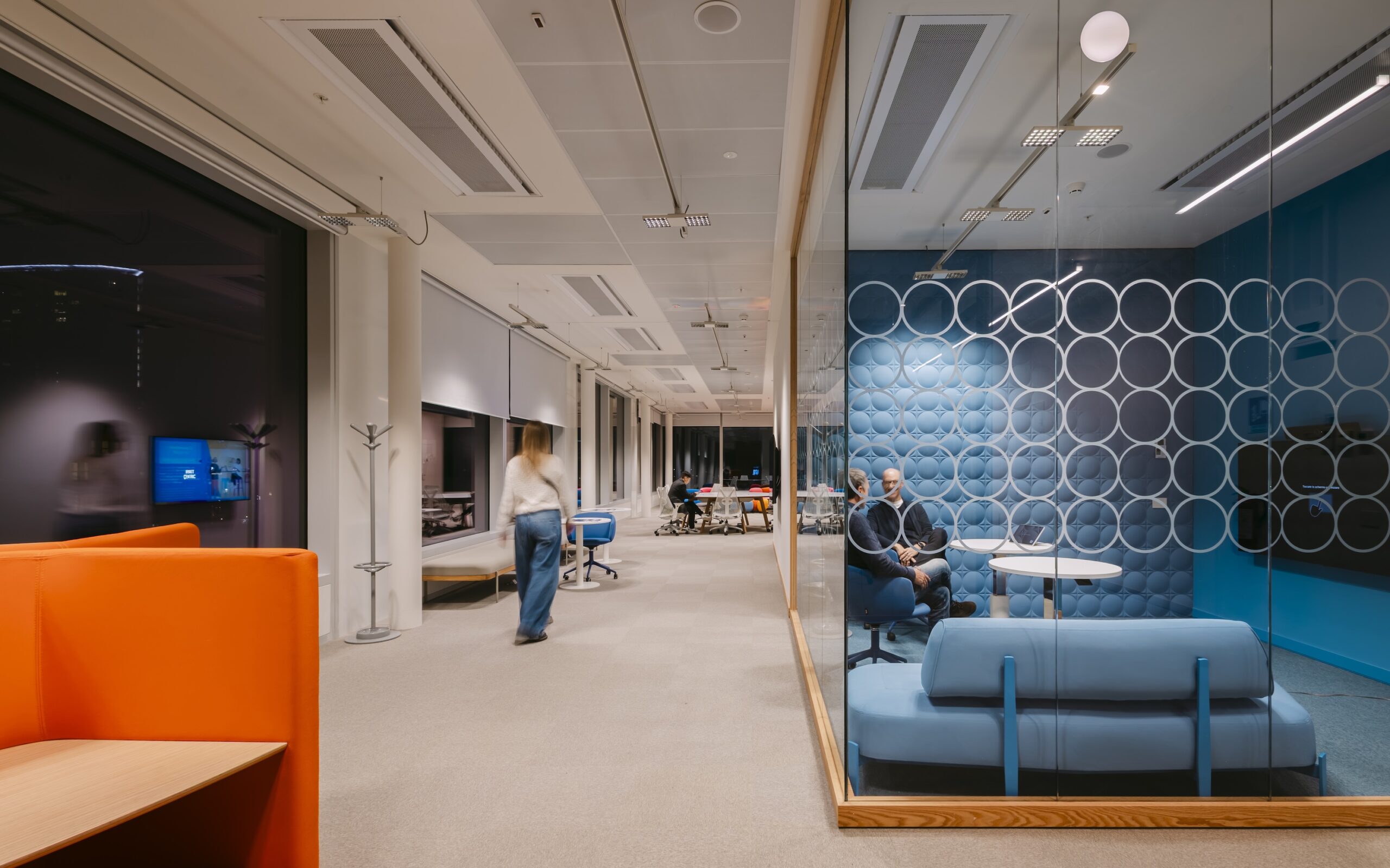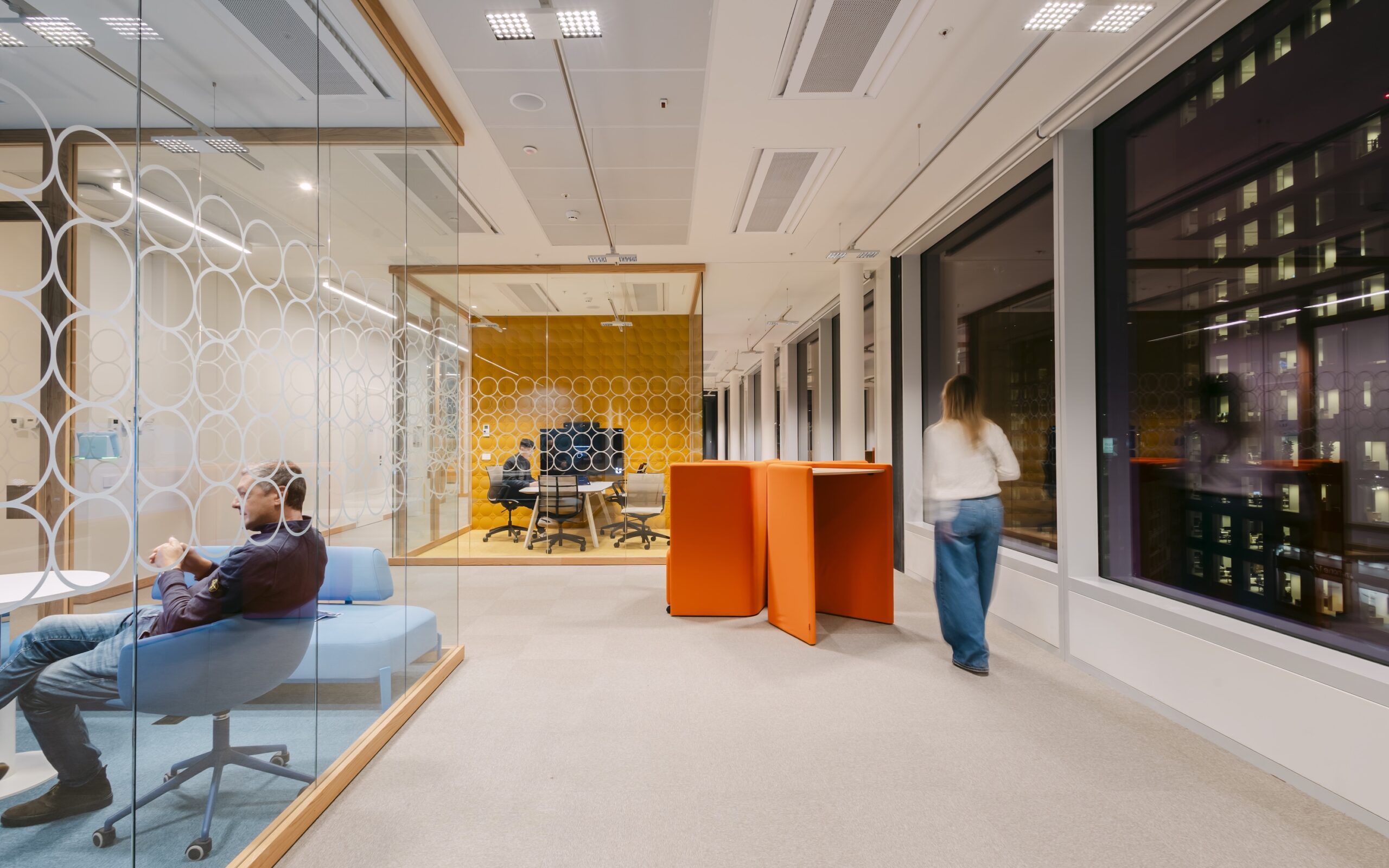 "Gli apparecchi Jilly sono stati scelti per la combinazione di prestazioni, comfort visivo, efficienza energetica e flessibilità, e danno la certezza che l’illuminazione favorisca la produttività e il benessere a diversi modi di usare e vivere gli spazi", afferma Lacopo. "Il loro sistema ottico avanzato assicura un’illuminazione di alta qualità con una schermatura efficace, rendendoli particolarmente adatti agli ambienti destinati a ufficio". Sistemi ottici precisi dirigono la luce esattamente sulle superfici che devono essere illuminate e che sono rilevanti per la percezione visiva. La luce proiettata dai LED in combinazione con sistemi di lenti di alta qualità risulta particolarmente efficiente. L'efficace schermatura garantisce un elevato comfort visivo per i dipendenti, migliorando il benessere complessivo e la qualità del tempo trascorso in ufficio.