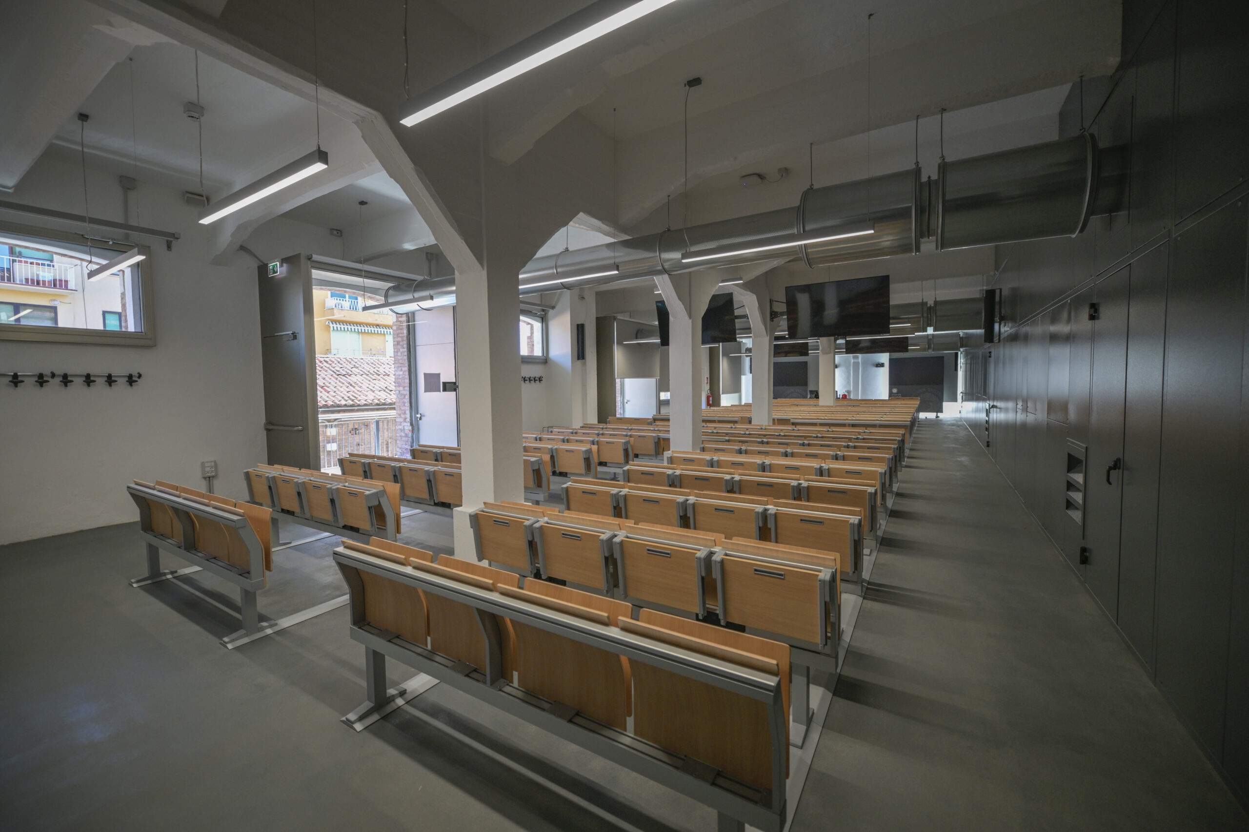 L’allestimento degli arredi è stato progettato per trasformare il “Magazzino 4” in uno spazio didattico flessibile, tecnologicamente integrato e accessibile. Le aule dispongono di attrezzature multimediali avanzate grazie a un investimento di oltre 700mila euro provenienti dal progetto PNRR EFC - Educating Future Citizens dedicato a potenziare, attraverso il Collegio Internazionale di Ca’ Foscari, orientamento, formazione di eccellenza e innovazione didattica rivolti a studenti e studentesse delle scuole secondarie e delle università.