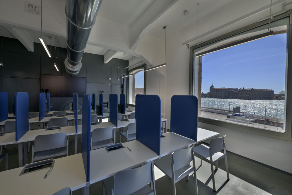 Per la prima volta l’Ateneo dedica uno spazio moderno e funzionale al potenziamento e alla valorizzazione delle competenze tecniche e trasversali del personale tecnico-amministrativo, ribadendo la centralità della formazione e dell’aggiornamento professionale come leva strategica per affrontare le sfide di un’organizzazione in continua evoluzione e per migliorare i servizi offerti alla comunità cafoscarina. L’aula, al secondo piano, è configurata per supportare le metodologie didattiche ibride contemporanee. Oltre alla tradizionale postazione per la lezione frontale, l’ambiente dispone di sei tavoli mobili pensati per i lavori di gruppo, ciascuno servito da un monitor a muro dedicato. L’aula diventa così un laboratorio dove collaborazione e interazione sono il motore di una formazione efficace e dinamica.