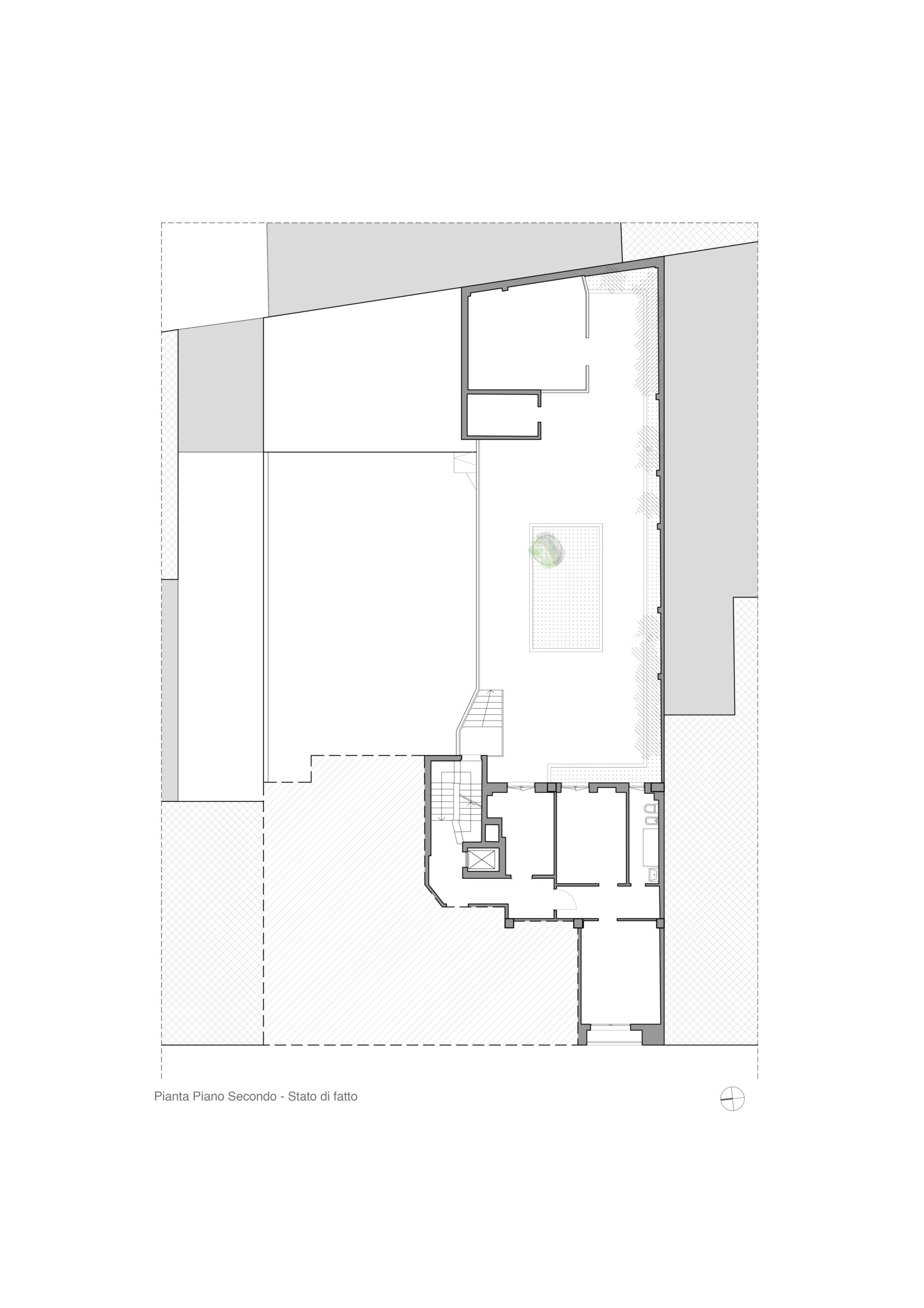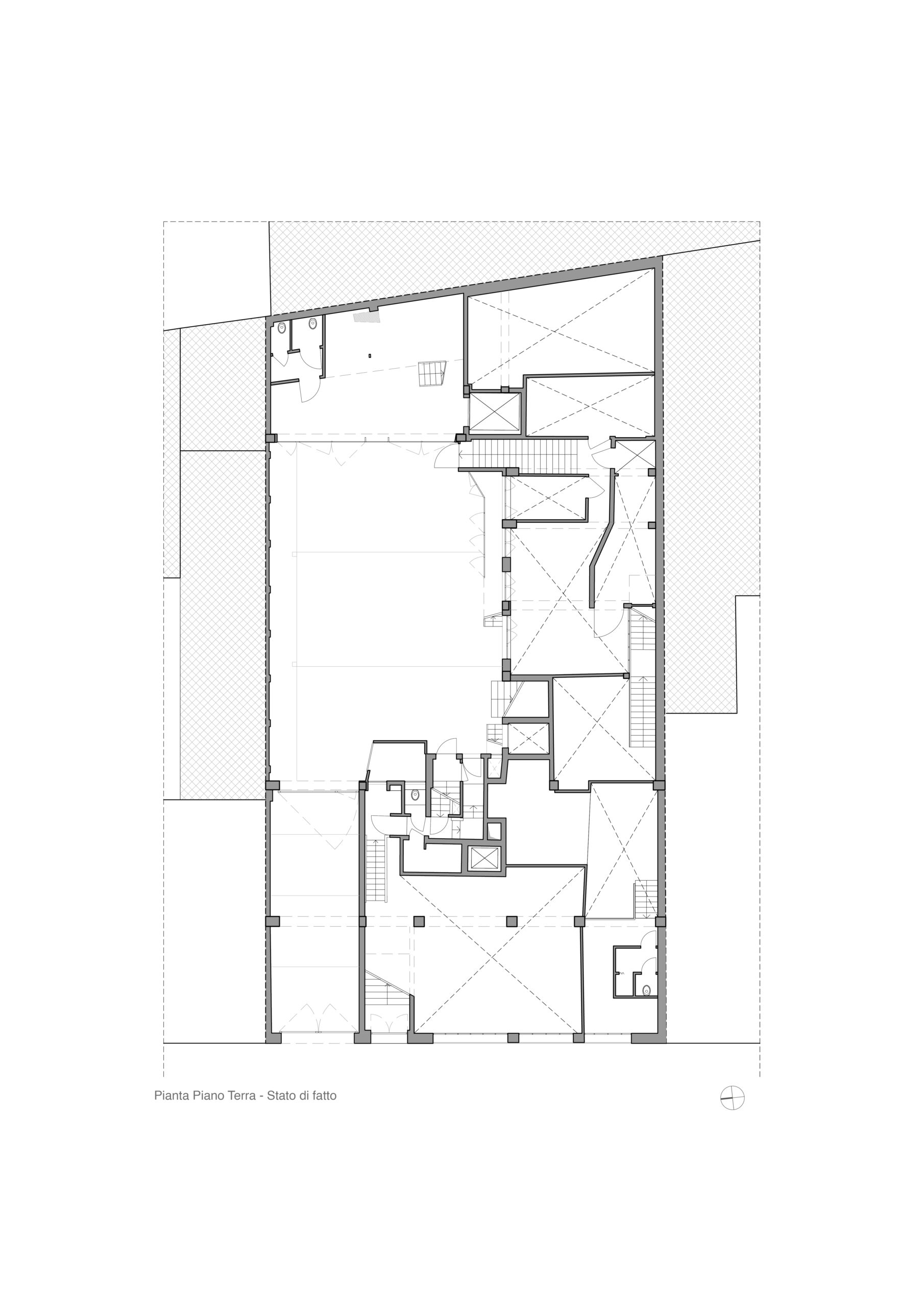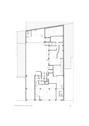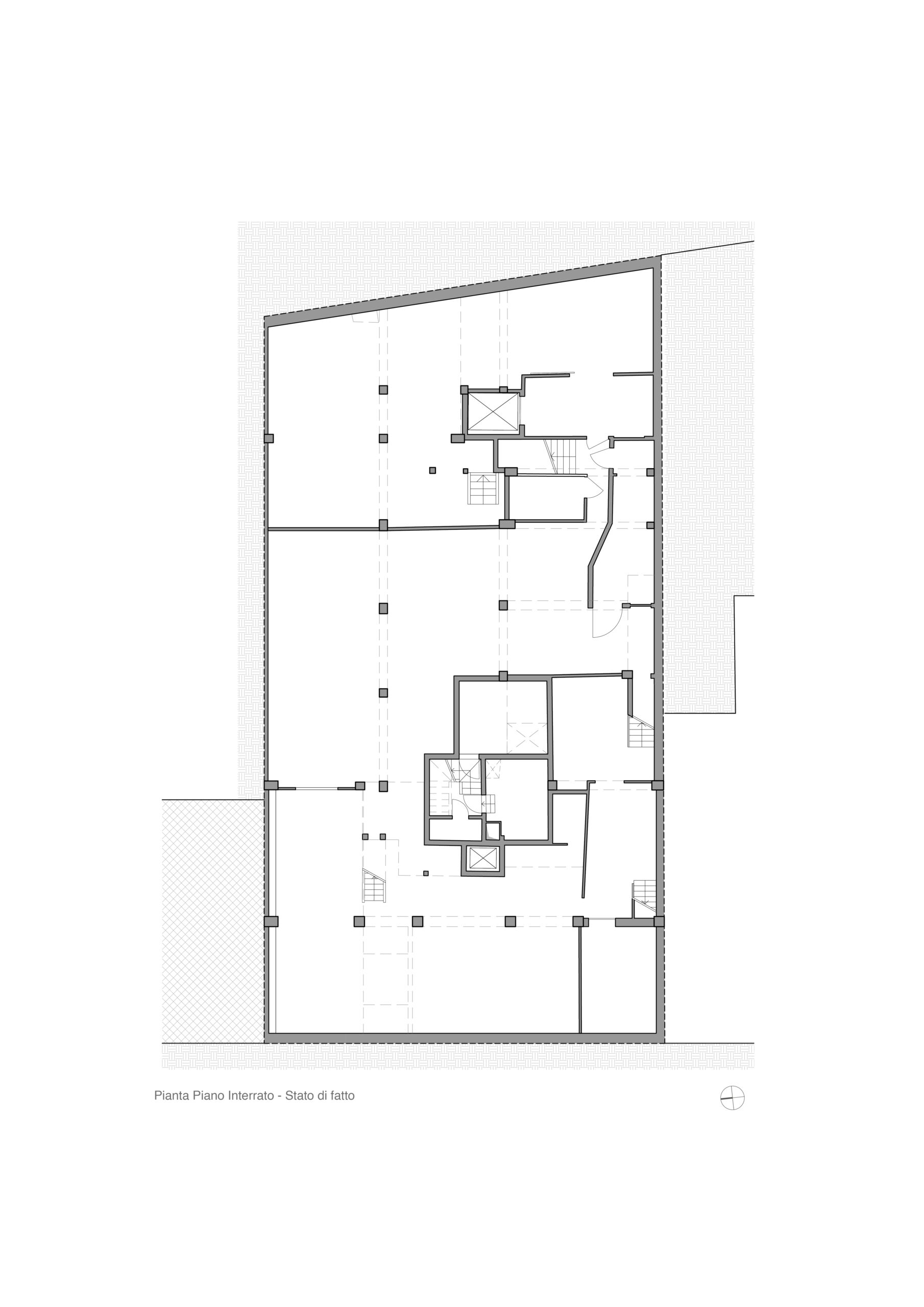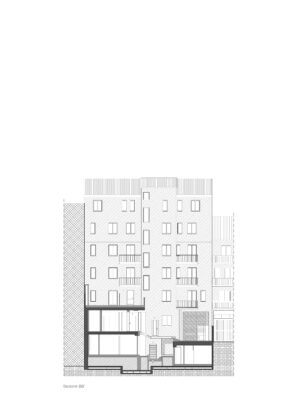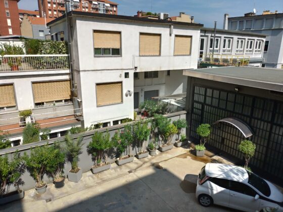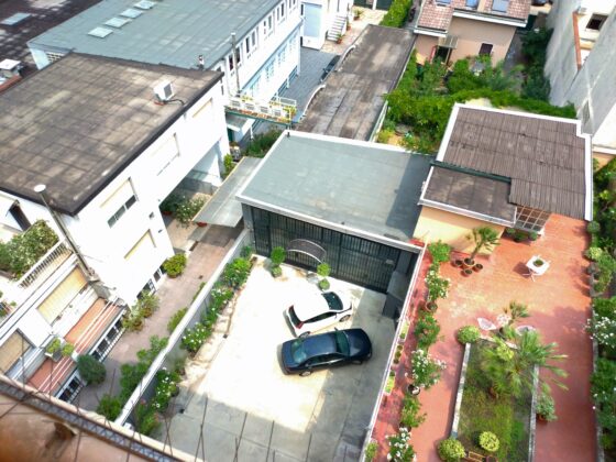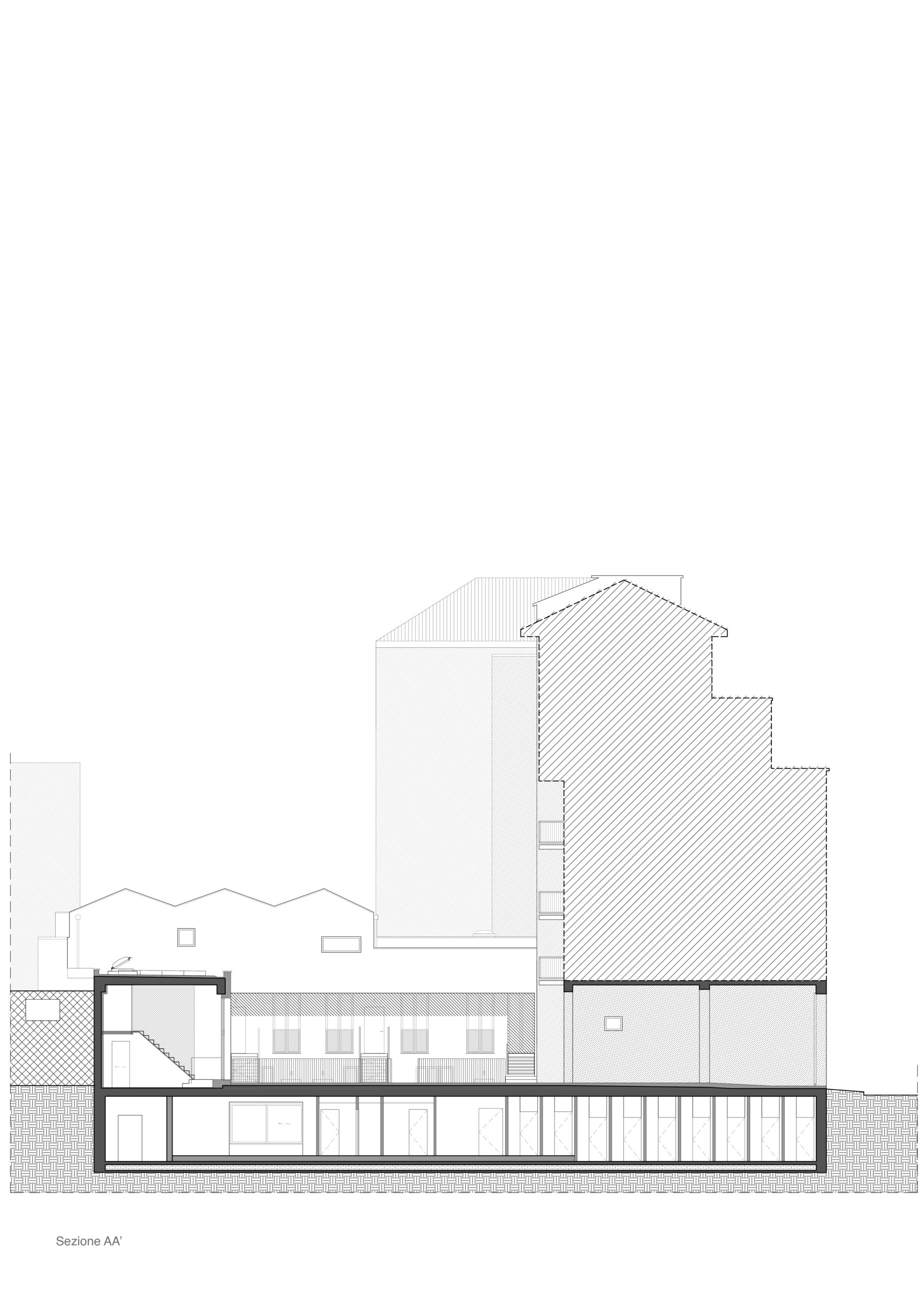 Il progetto interviene su un edificio a impianto a L che abbracciava due lati del cortile di un palazzo su strada e il principio del progetto è stata un attento rilievo dello stato di fatto. La strategia principale non è stata l’espansione volumetrica, ma la ridefinizione delle relazioni tra spazi interni ed esterni, la ridefinizione di nuovi ingressi e di un nuovo rapporto tra la corte e il costruito. L’operazione più incisiva riguarda il piano seminterrato, reso pienamente abitabile grazie all’abbassamento di una porzione della corte, trasformata in un patio ribassato articolato spazialmente da gradonate, sedute e superfici piantumate. Uno spazio prima residuale diventa così un luogo di vita condivisa, capace di mediare tra dimensione privata e collettiva, il cortile, sopraelevato che diventa una nuova piazza per gli abitanti.Il complesso ospita dieci unità abitative di piccolo e medio taglio – monolocali, bilocali e trilocali – tutte con accesso indipendente dal cortile, oltre a spazi comuni collocati sotto la corte: lavanderia, cantine, locale polifunzionale e ambienti di servizio. Un’ulteriore unità trova posto sulla terrazza, all’interno di un nuovo volume a falde che sostituisce i vecchi corpi tecnici e contribuisce a ricomporre l’immagine complessiva dell’edificio.Dal punto di vista architettonico, il progetto costruisce un linguaggio unitario attraverso superfici bianche, parapetti leggeri e grandi aperture vetrate che mettono in continuità visiva interni e spazio comune. La complessità volumetrica e altimetrica è governata con un disegno misurato, che restituisce ordine e riconoscibilità ricucendo un micro-frammento urbano con la città.
