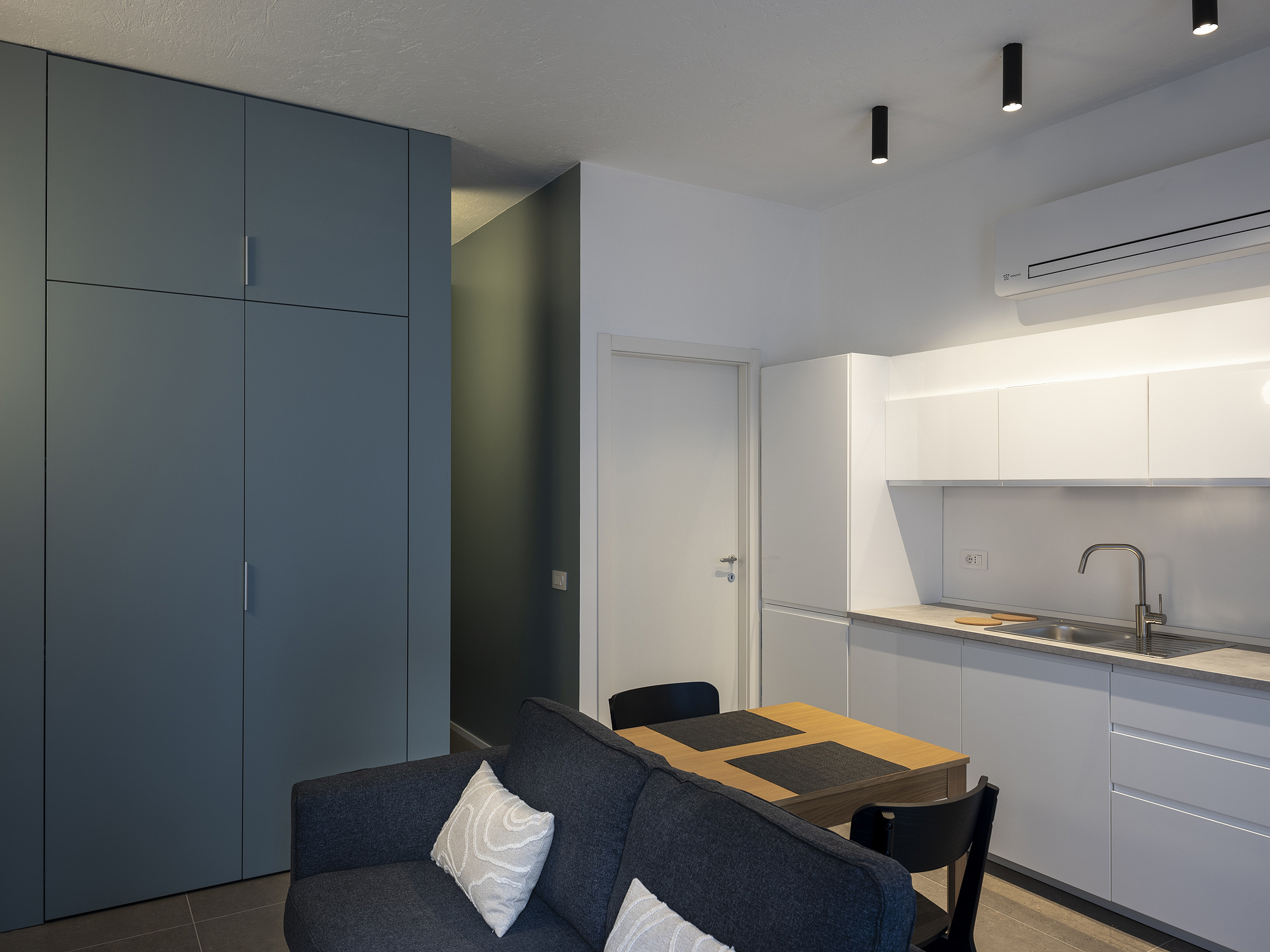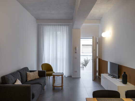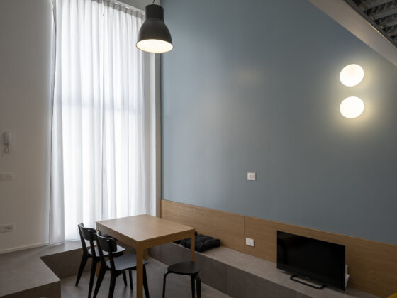 All’interno, le dieci unità abitative hanno tutte ingresso autonomo e sono monolocali, bilocali o trilocali, hanno dei pavimenti in pietra grigia e tinte cromatiche neutre con dettagli in rovere, ocra, azzurro, bianco e grigio. Tutti gli ambienti interni sono specchio del vivere attuale con spazi flessibili che si adattano alle esigenze del fruitore. Ai piani interrati trovano spazio, invece, gli spazi comuni come un locale polifunzionale, cantine, lavanderia, magazzino e locale rifiuti a disposizione di tutti gli abitanti per piccole attività ricreative, studiare, lavorare o per momenti ricreativi.Riuso Lambrate interpreta in modo convincente il tema dell’abitare temporaneo: spazi essenziali ma accuratamente progettati, servizi condivisi che ampliano l’esperienza domestica e una forte attenzione alla qualità degli spazi filtro tra spazio pubblico e privato. Un intervento che dimostra come anche i margini della città possano diventare luoghi densi di progetto, capaci di generare nuove forme di comunità.