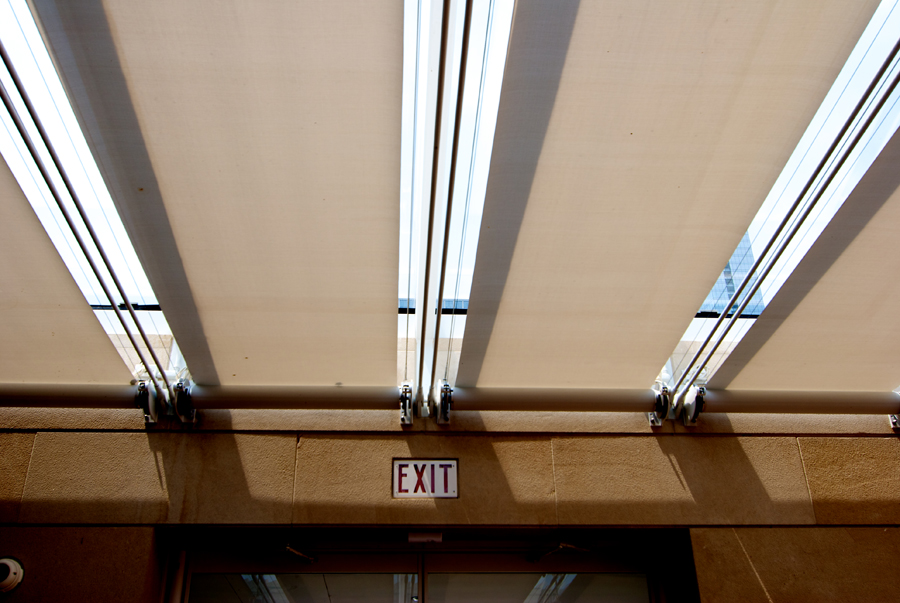 Una seconda lettura delle svariate tipologie a disposizione dei progettisti per ridurre l'irraggiamento incidente sulla superficie vetrata è possibile analizzando la distinzione tra schermi costituiti da teli continui, in tessuto tecnico o da schermi costituiti da elementi solidi, quali stecche, pale e segmenti, mobili o fissi.