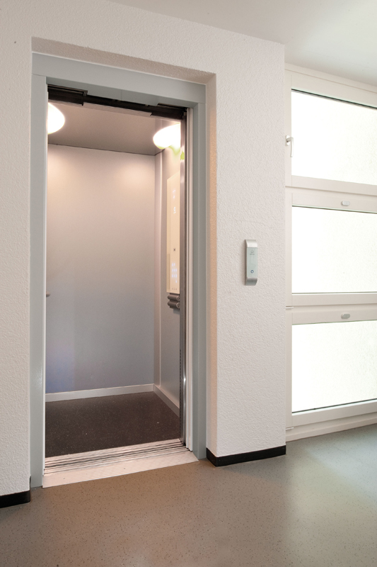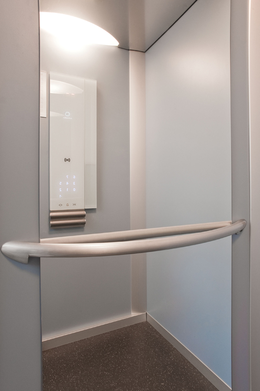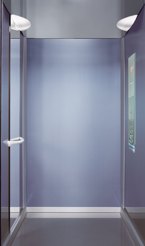 Impianto a trazione elettrica con motore gearless, cabina autoportante, porte movimentate da operatore ACVF. Il quadro di manovra è integrato nello stipite della porta all'ultimo piano e può coordinare fino a 3 impianti in gruppo.