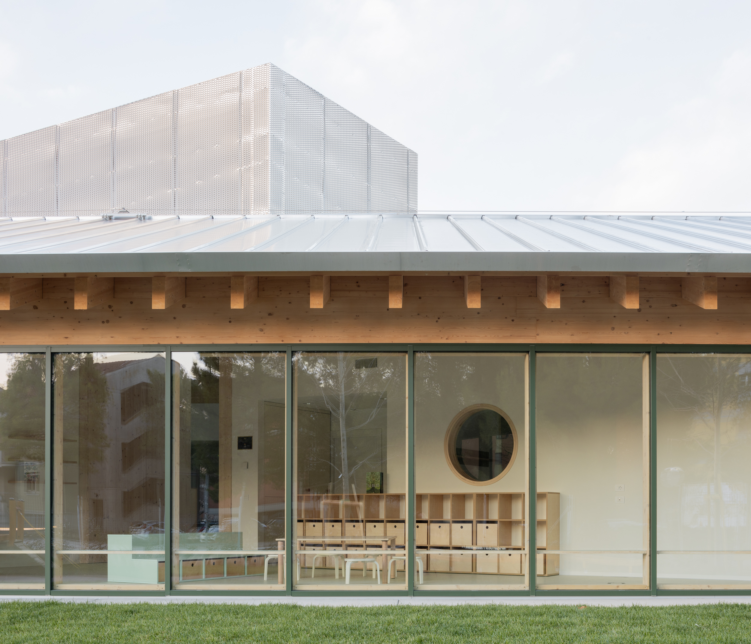 L’intervento, nello specifico, riguarda la costruzione di una piccola scuola per l’infanzia 0-6, all’interno di una più ampia iniziativa di riqualificazione di un polo scolastico a Macerata. Con l’intenzione di trasformare in opportunità i vincoli di contesto –un lotto di piccole dimensioni e tempi di costruzione molto contenuti– il progetto di BDR bureau segue caratteri tipologici e costruttivi semplici.