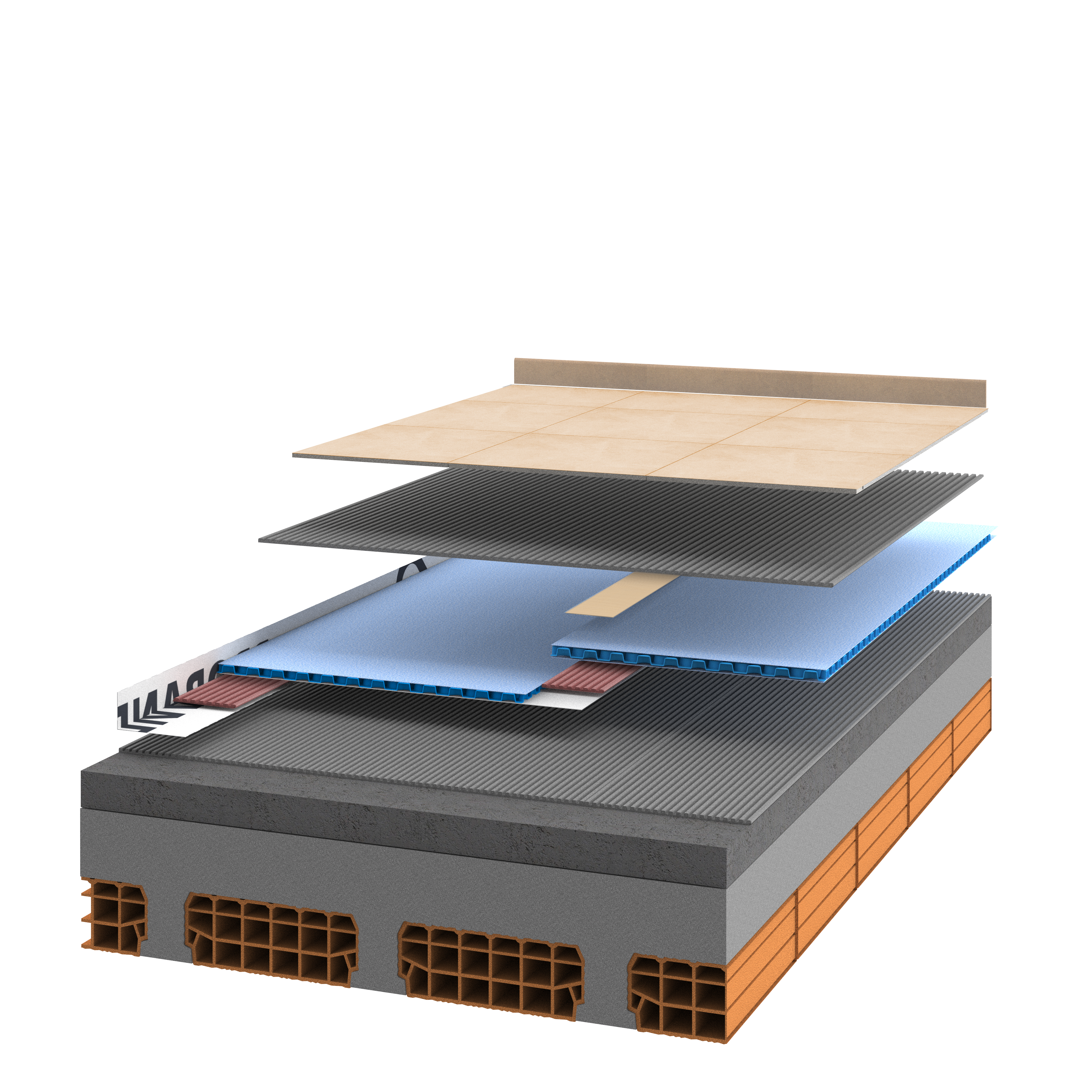 A completare il sistema, la membrana PRODESO DRAIN 8 SYSTEM, brevettata per combinare tre funzioni in una: drenaggio, impermeabilizzazione e desolidarizzazione. Con soli 8 mm di spessore, crea uno spazio d’aria sotto la pavimentazione che favorisce il deflusso dell’acqua, accelera l’asciugatura dell’adesivo e previene la formazione di efflorescenze. La sua struttura consente l’applicazione anche su supporti non perfettamente stagionati o su superfici già esistenti, migliorando la resistenza e la durata complessiva dell’intervento.