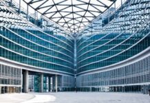 Le facciate continue di tutto l'insediamento, punto di forza della progettazione architettonica, hanno adottato soluzioni di volta in volta peculiari in base alle situazioni da affrontare.