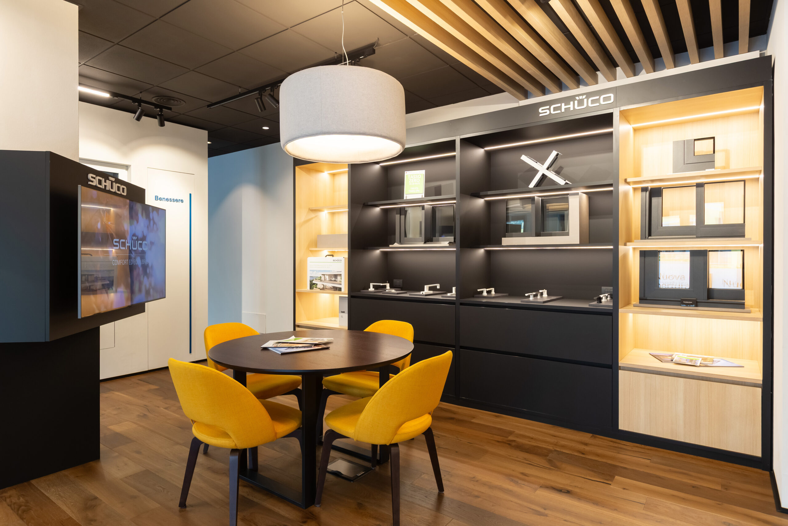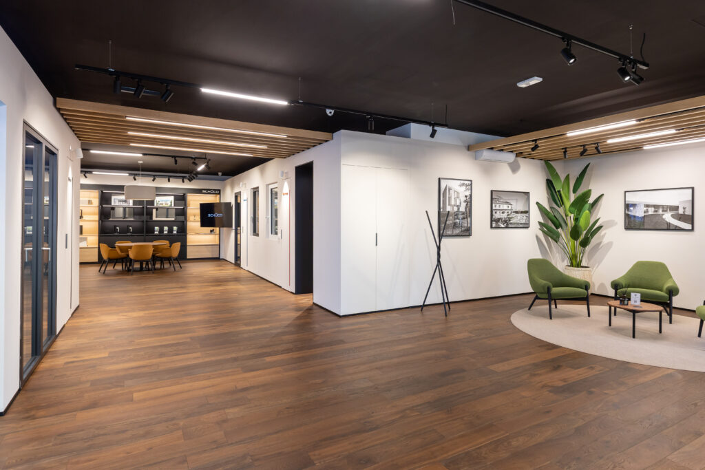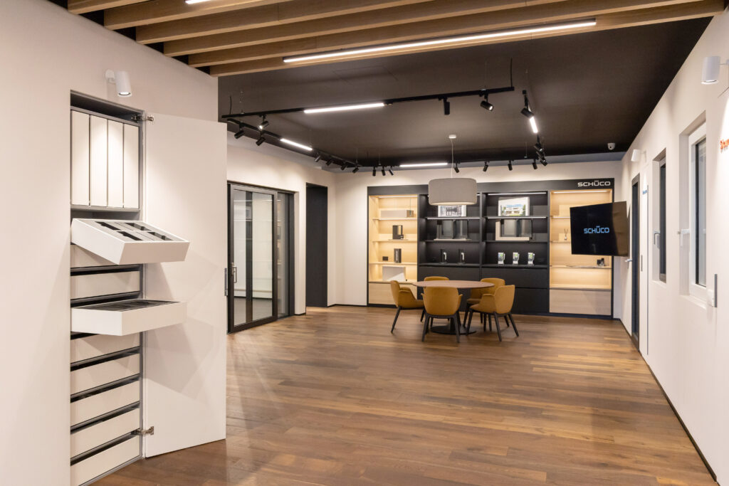 Questi nuovi spazi espositivi e di vendita sono concepiti come ambienti abitativi raffinati e accoglienti, dove il cliente può sentirsi “a casa”. I valori fondanti di Schüco - qualità, durata e affidabilità nel tempo, design, sostenibilità e innovazione tecnologica - sono immediatamente percepibili. Le finestre, le porte e gli scorrevoli sono installati in contesti reali, con pavimenti, pareti e complementi d’arredo - tende tecniche e avvolgibili inclusi - che consentono di cogliere ogni dettaglio estetico e funzionale, rendendo tangibili i vantaggi e l’eleganza delle soluzioni in alluminio Schüco.