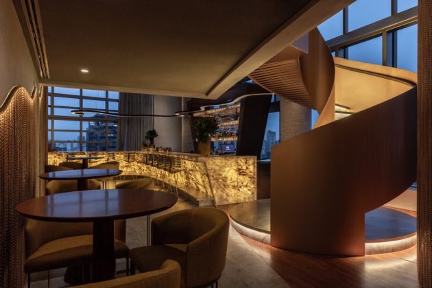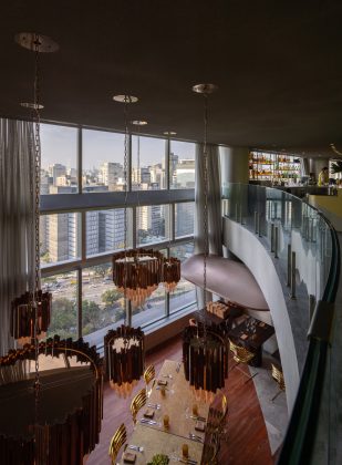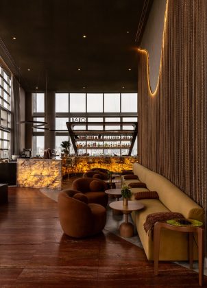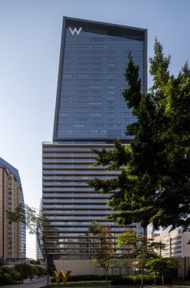 I primi 23 piani ospitano le W Residences: 216 unità di diverse metrature dotate di aree comuni come piscina, palestra e lounge. Il 24° piano accoglie la lobby dell’hotel e lo Yōso Bar & Café, mentre i livelli superiori ospitano 179 camere e 16 suite curate da Nini Andrade Silva, che interpreta materiali e cromie in relazione al contesto urbano. In sommità, una piscina panoramica offre una vista a 360 gradi sulla città.